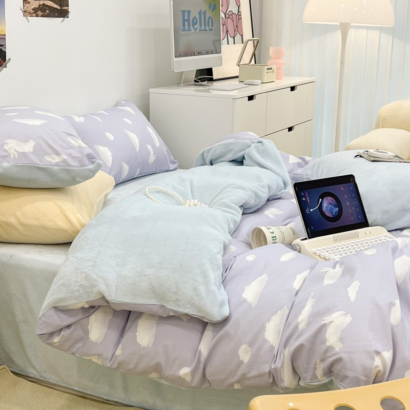 昔可 2022新款梦幻公主风系列棉加绒印花四件套 蓝云朵