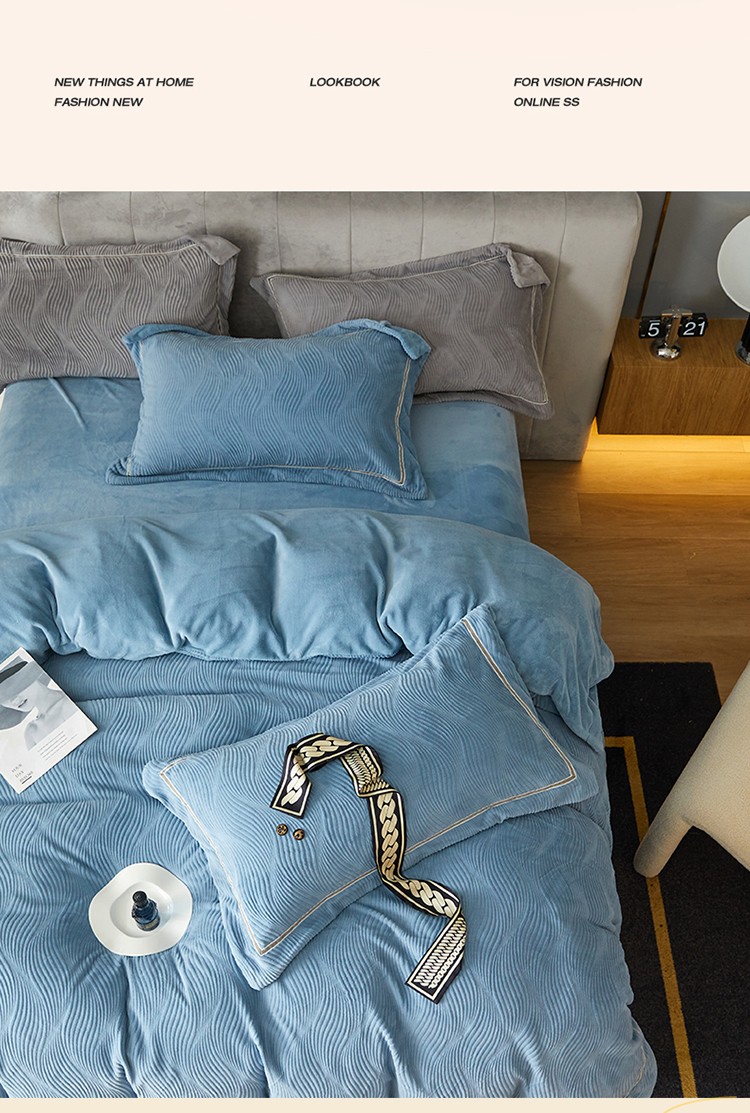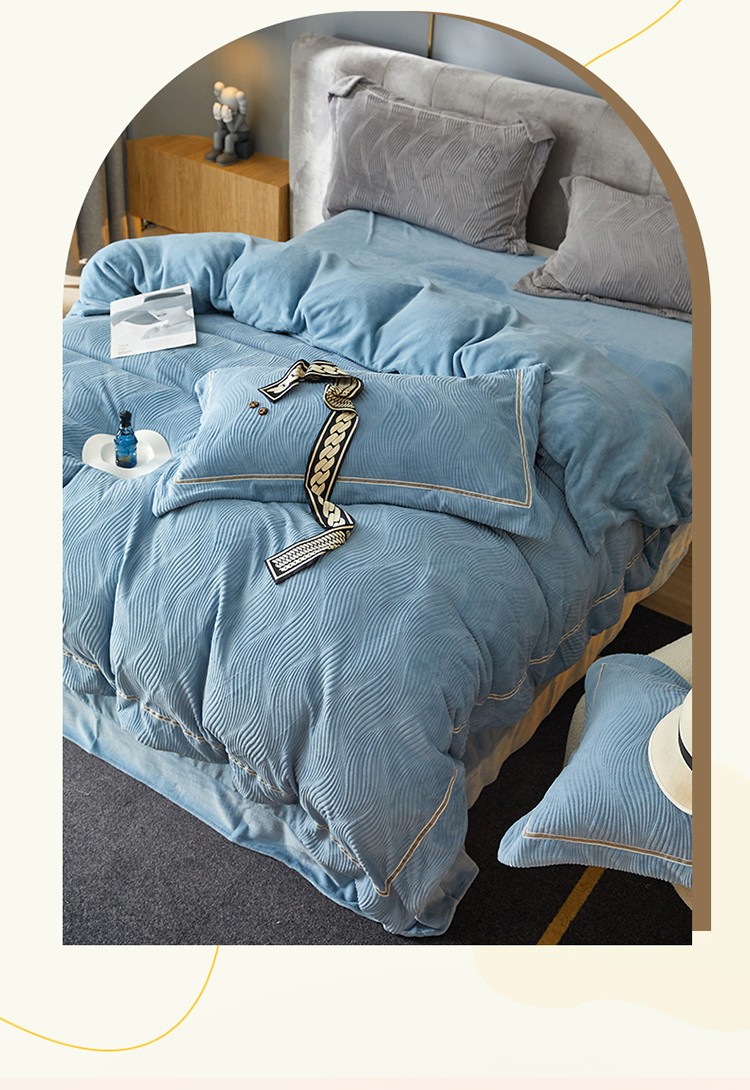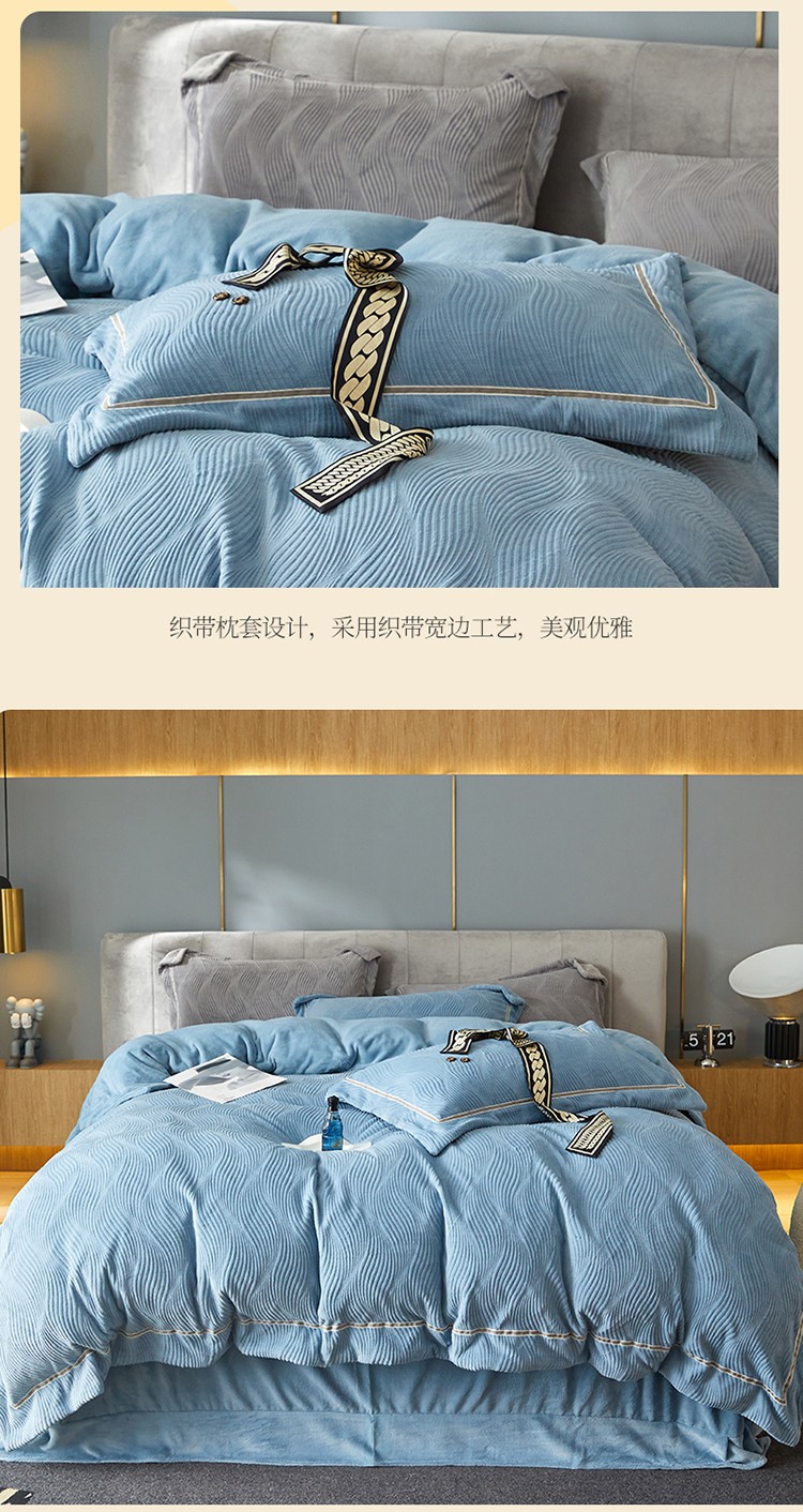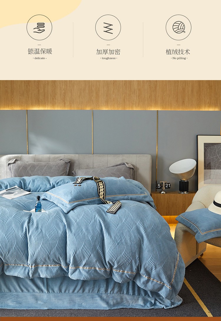 名品优仓 2022新款精美雕花牛奶绒230克四件套-玛利亚 玛利亚-天蓝