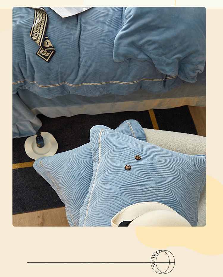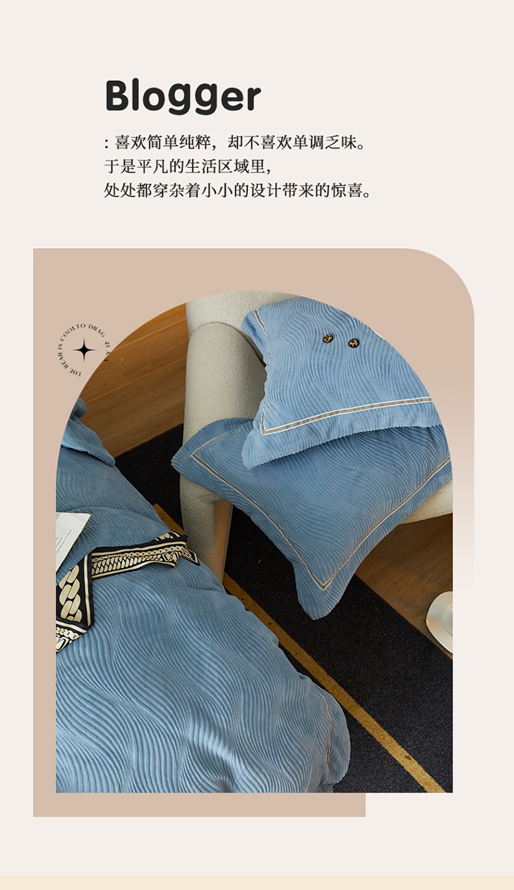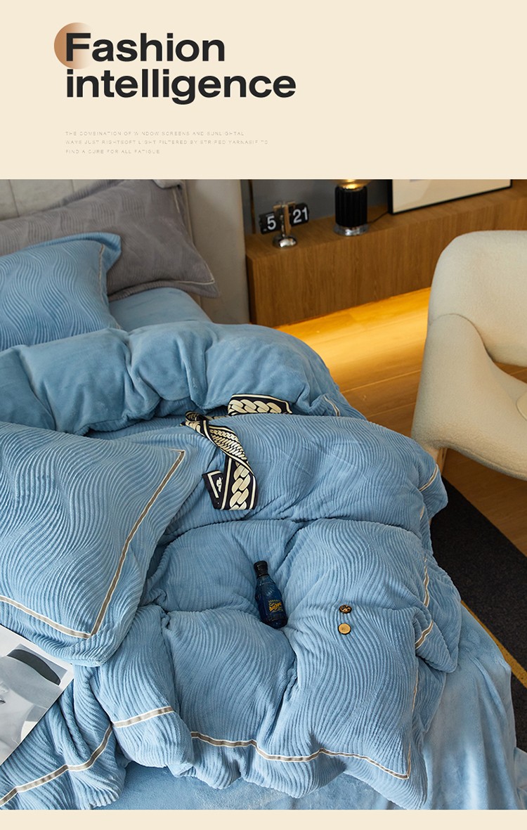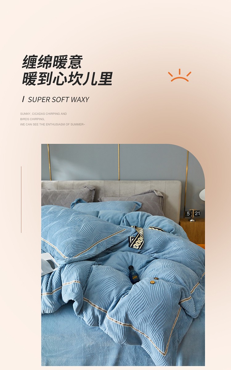 名品优仓 2022新款精美雕花牛奶绒230克四件套-玛利亚 玛利亚-天蓝