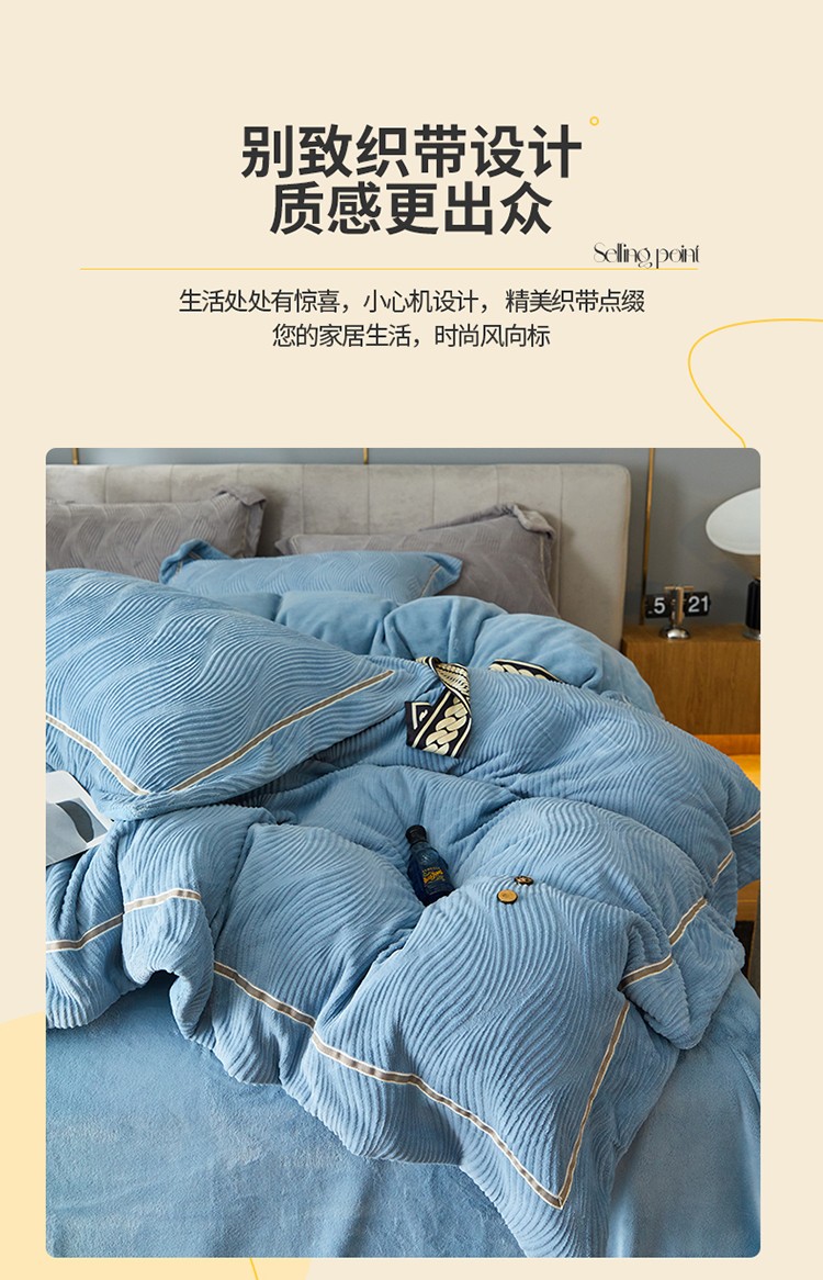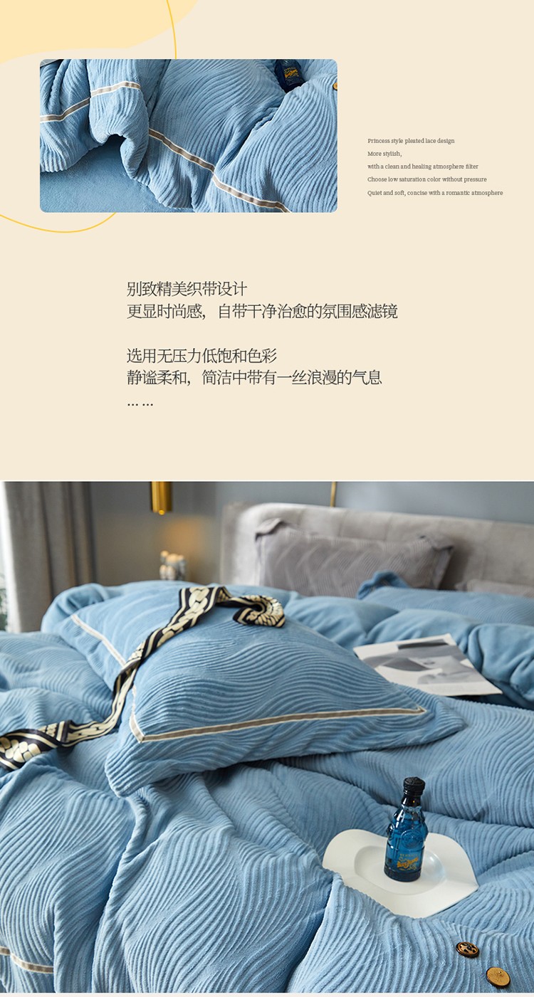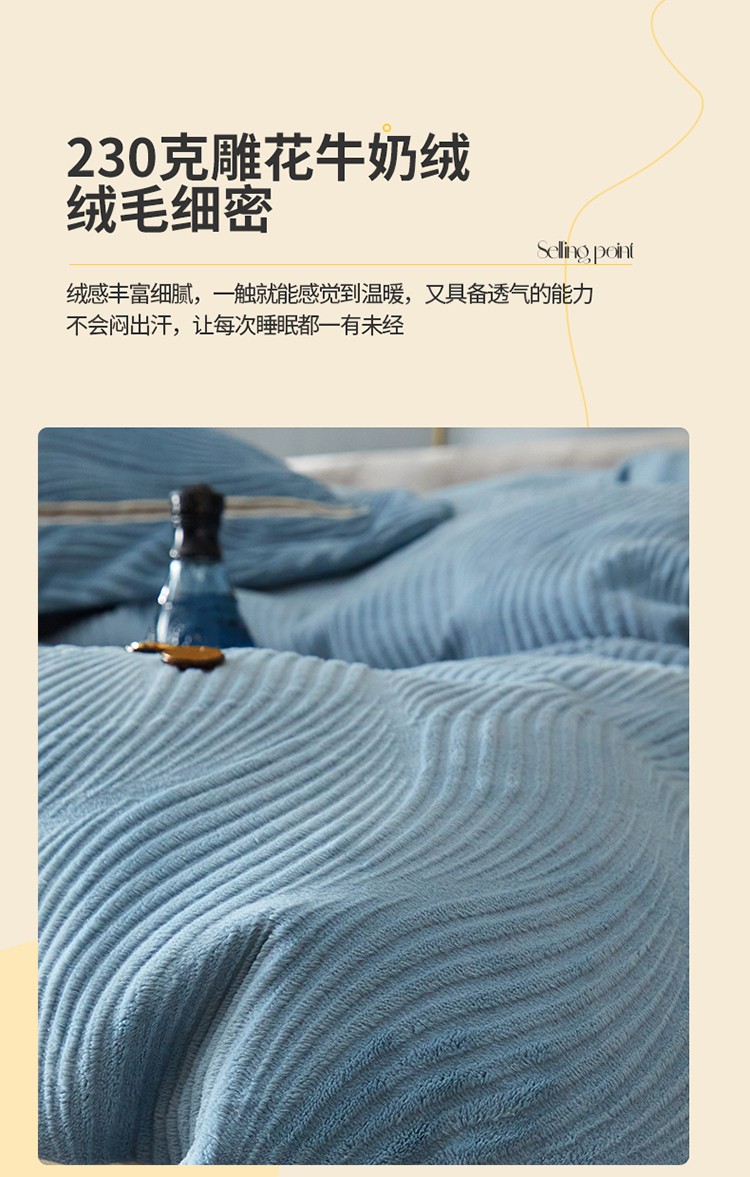 商品名称:名品优仓 2022新款精美雕花牛奶绒230克四件套-玛利亚 玛利亚-天蓝