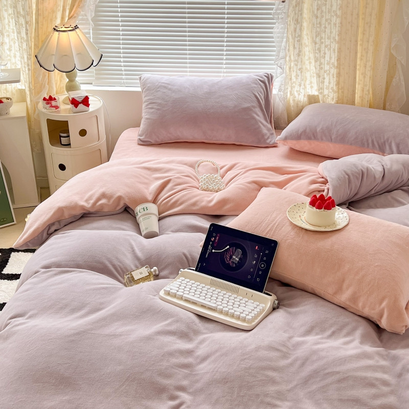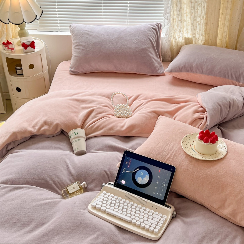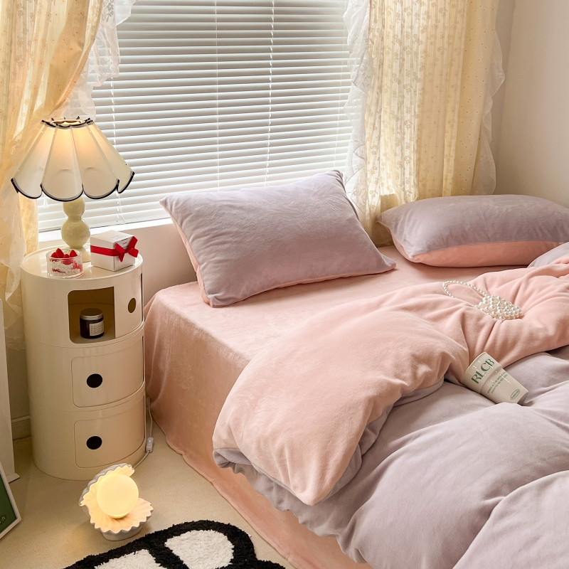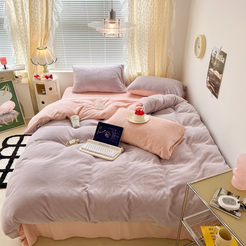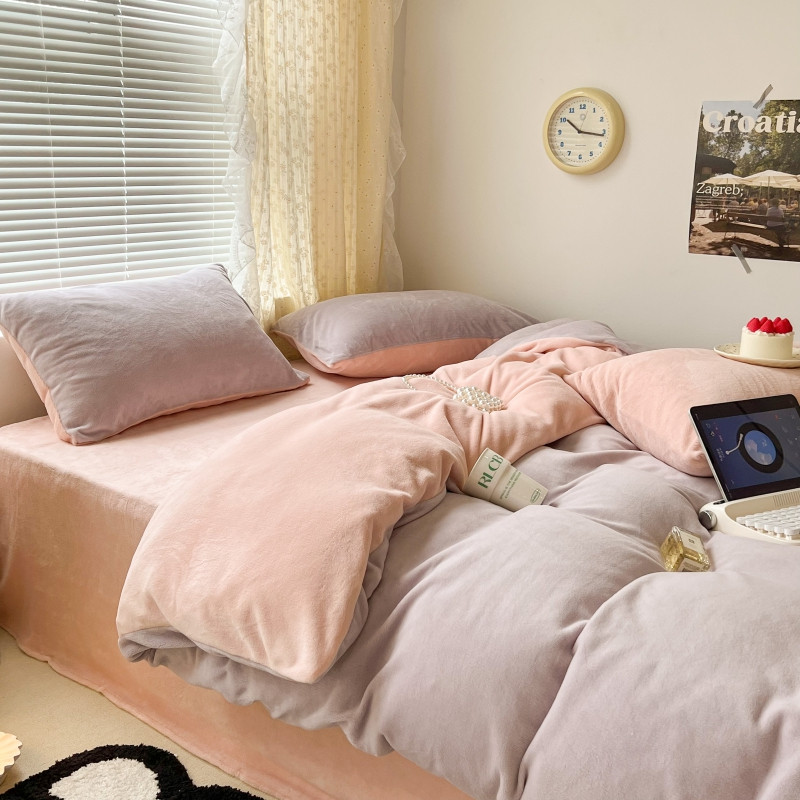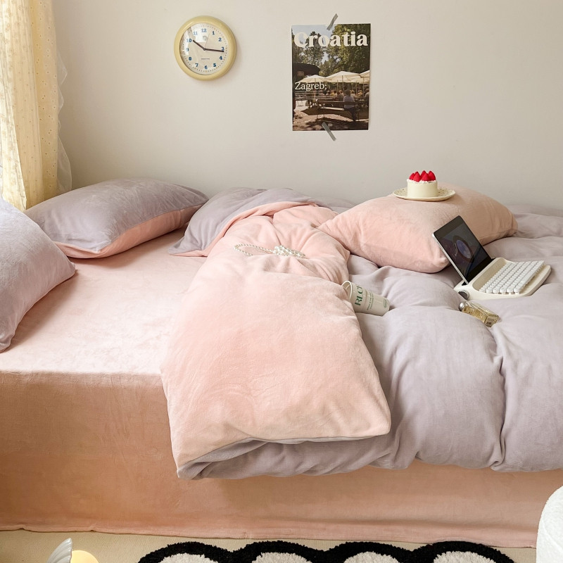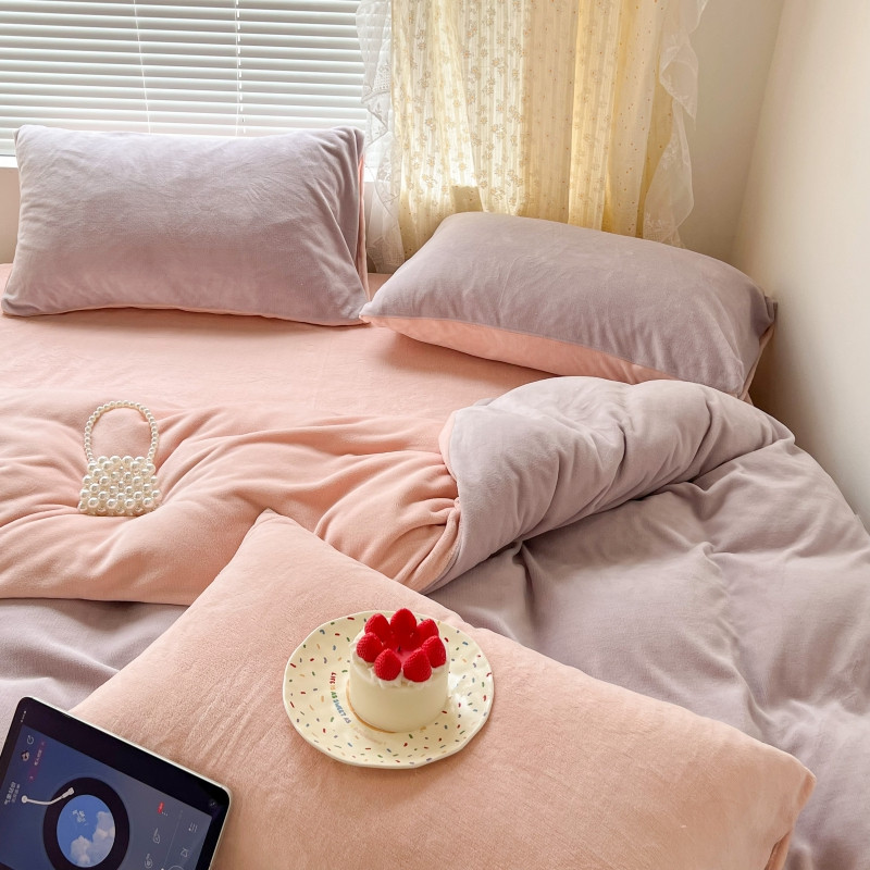 昔可 2022新款奶油双拼系列牛奶绒四件套 糯糯紫粉