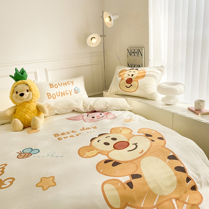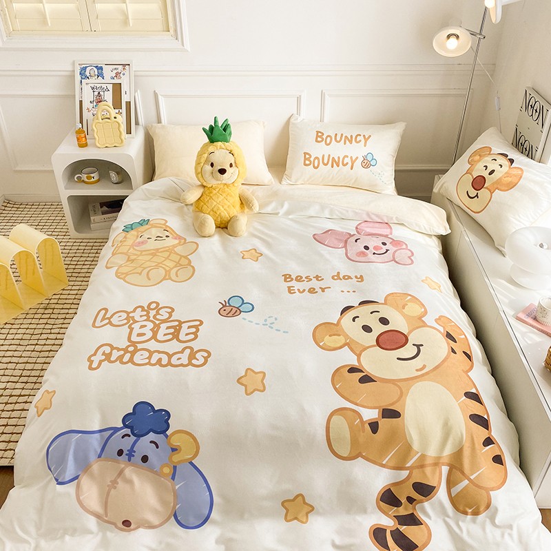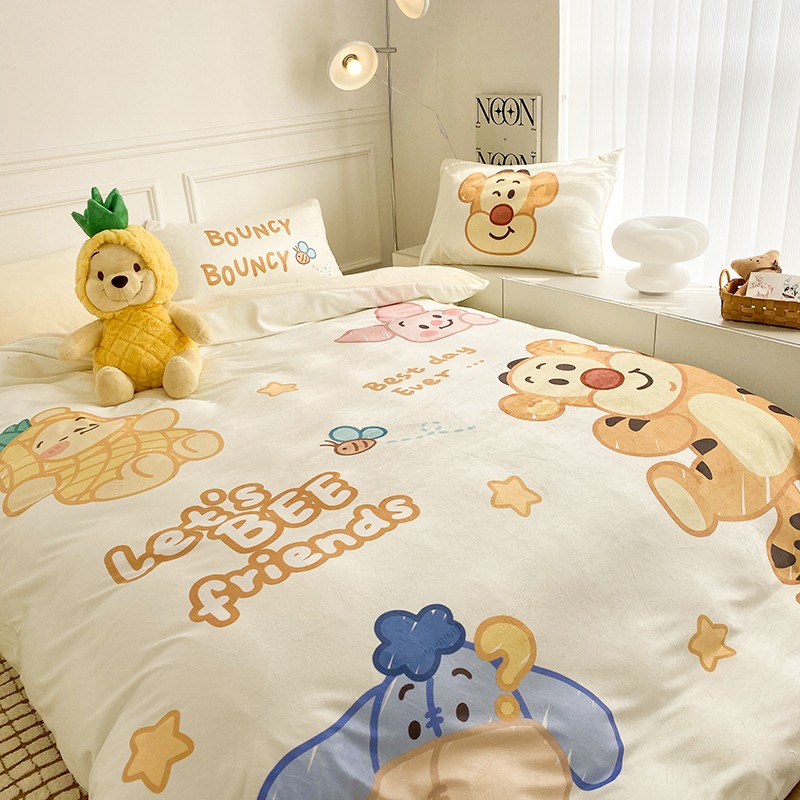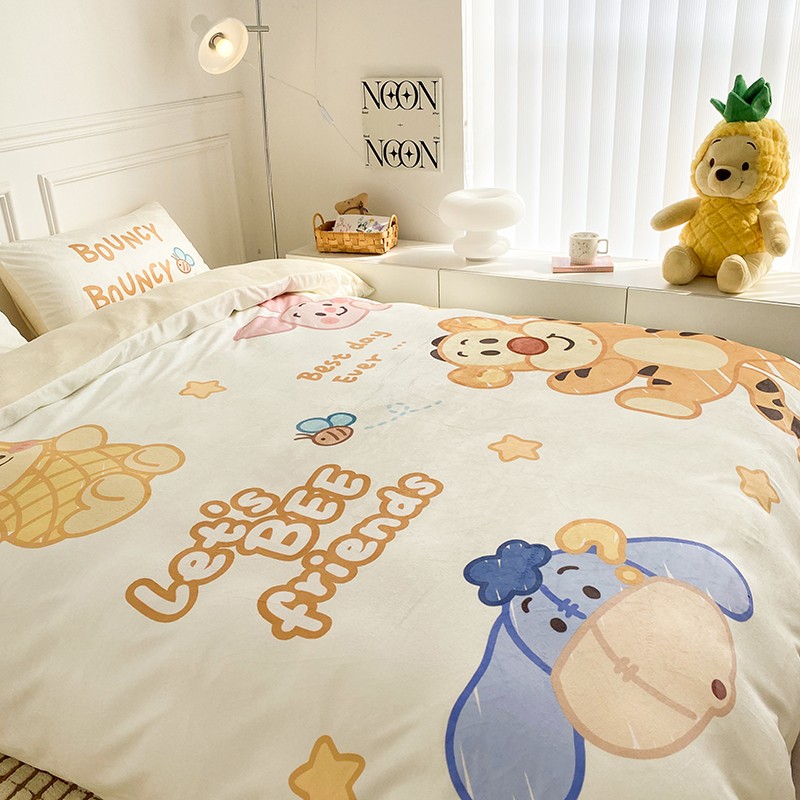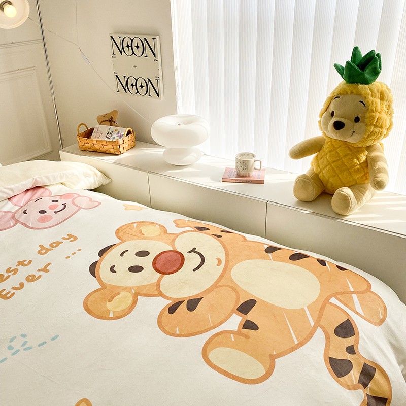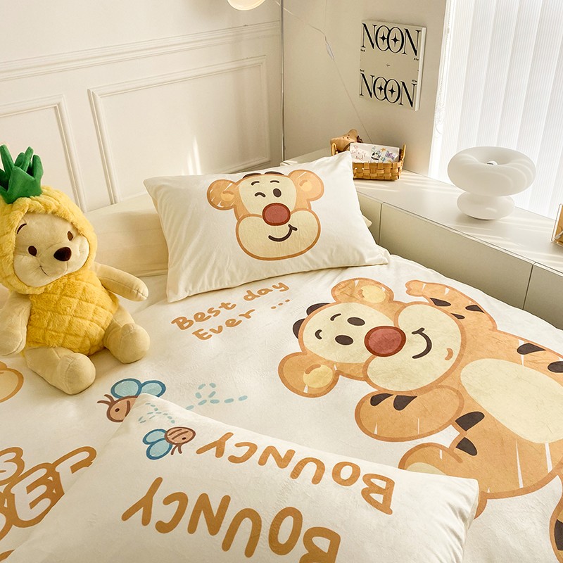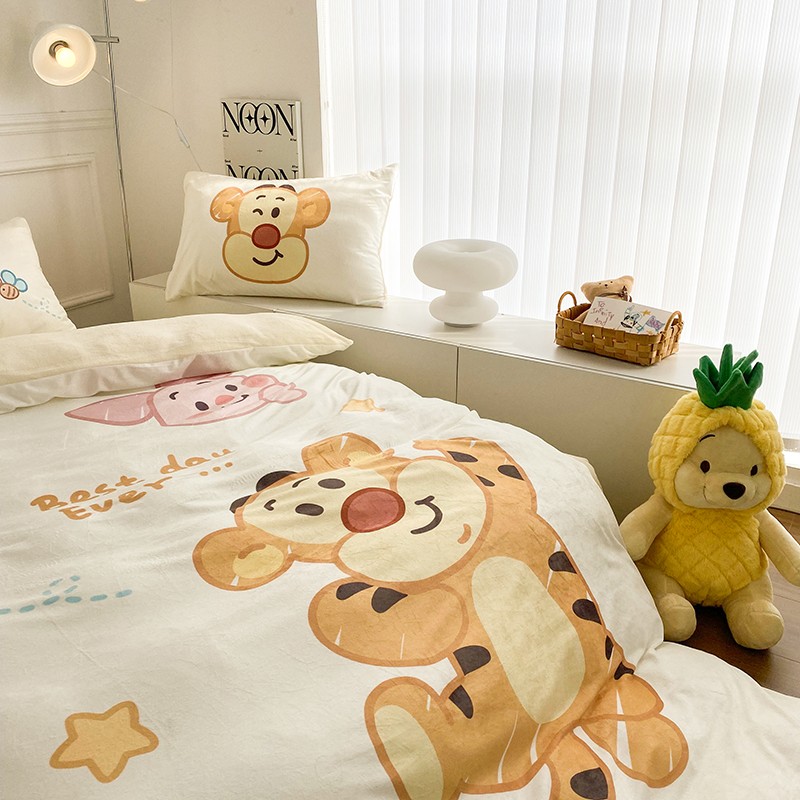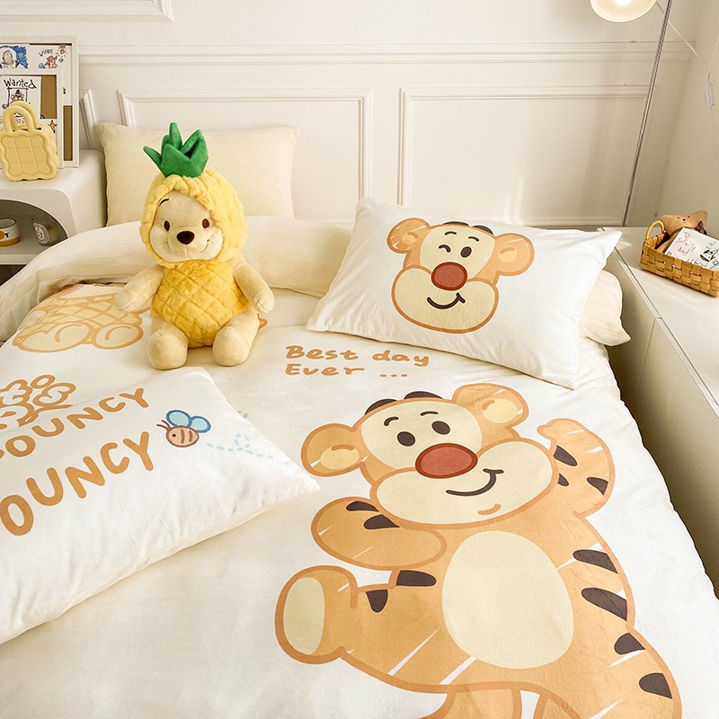 圆岛家纺2022新款迪士尼大版牛奶绒宝宝绒四件套跳跳虎&噗噗