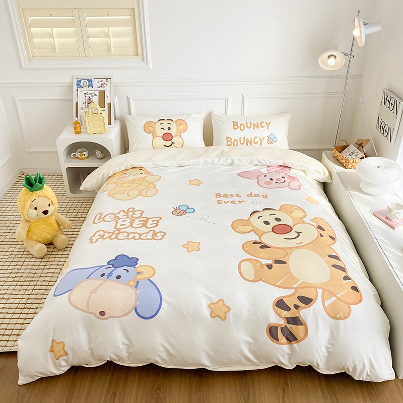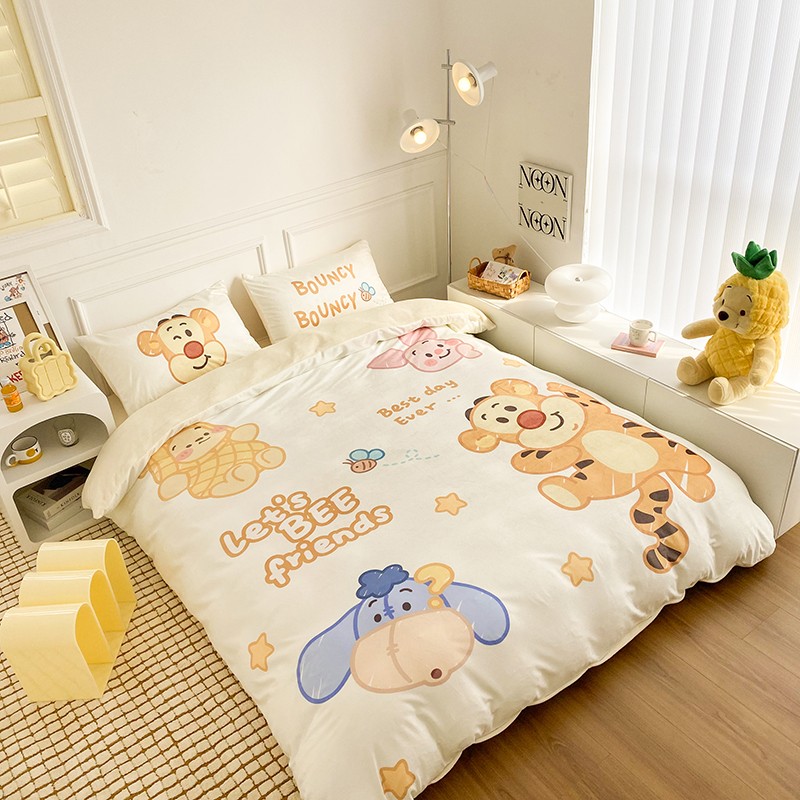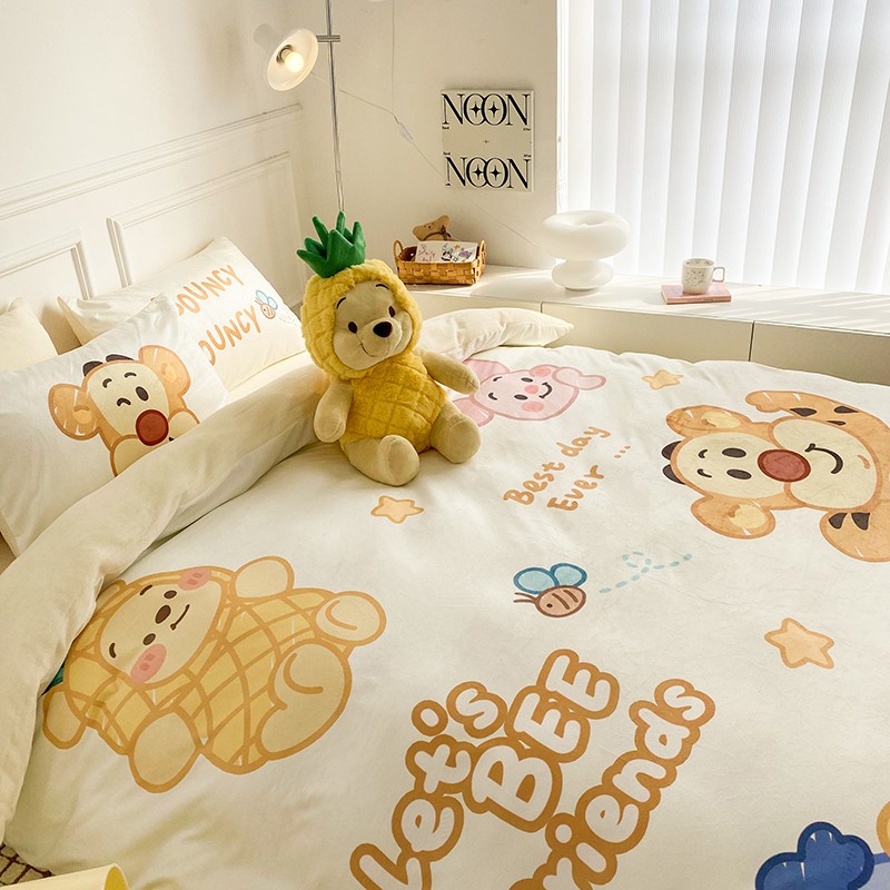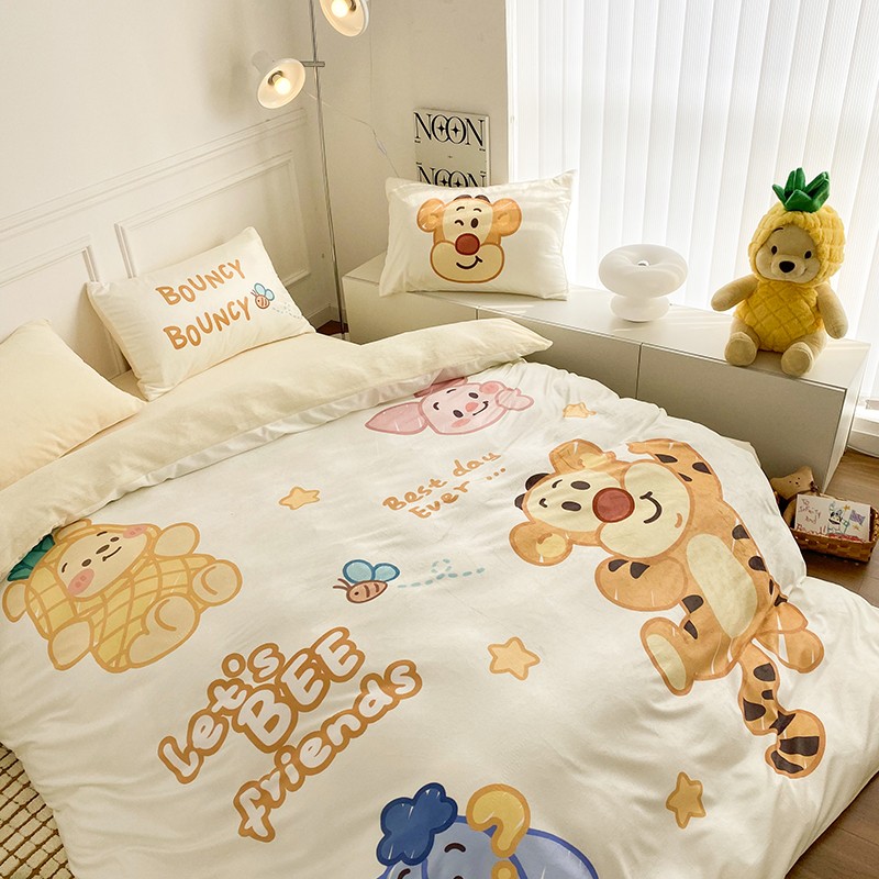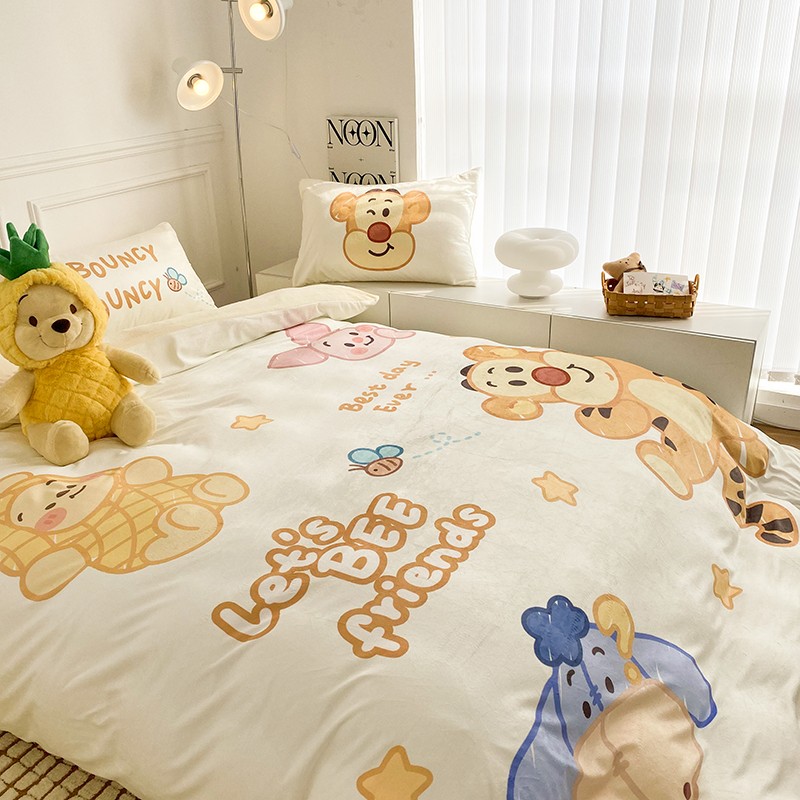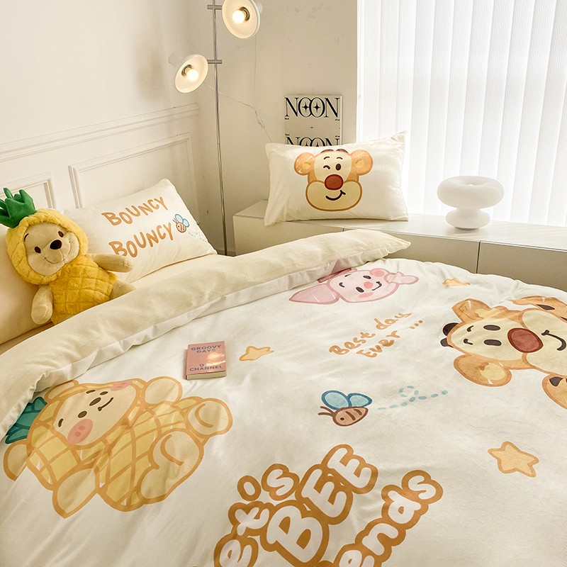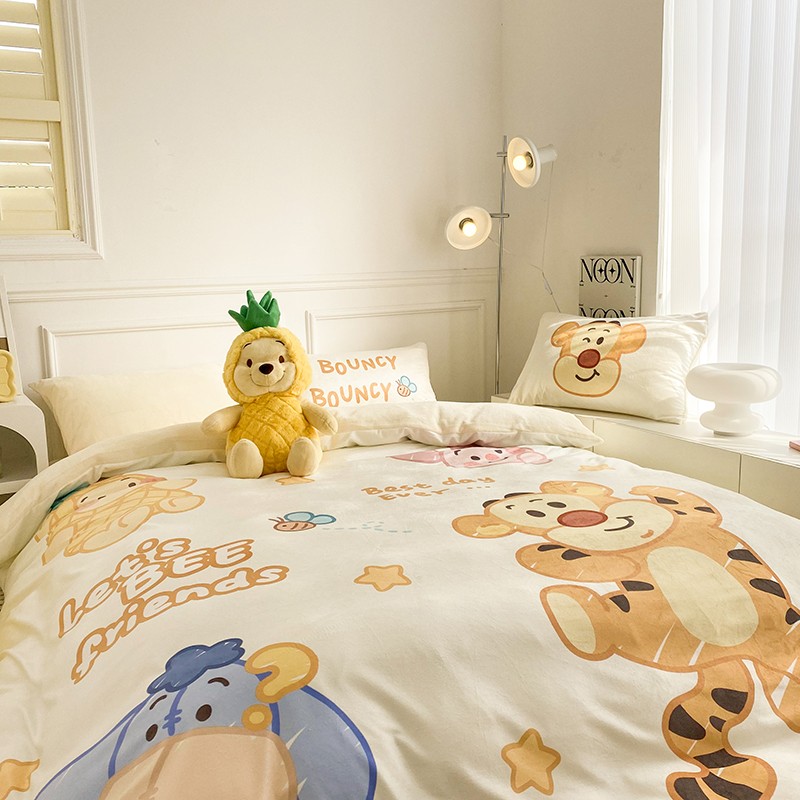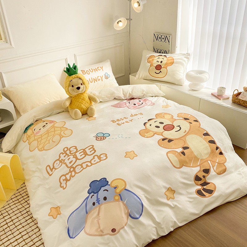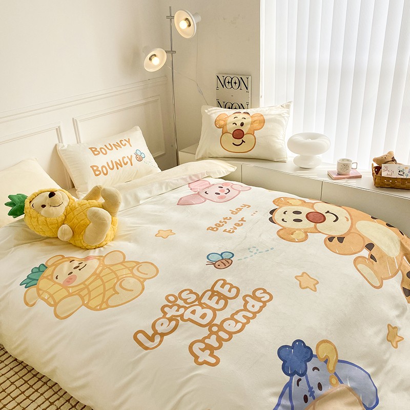 圆岛家纺2022新款迪士尼大版牛奶绒宝宝绒四件套跳跳虎&噗噗