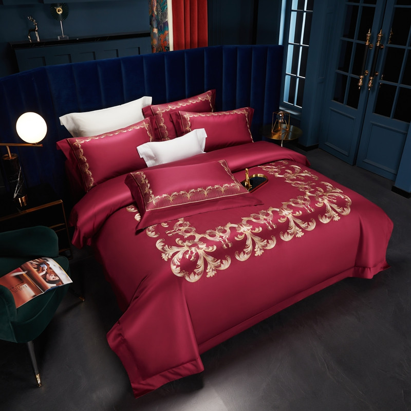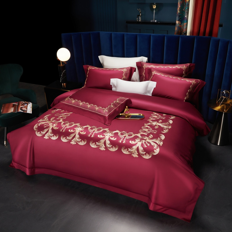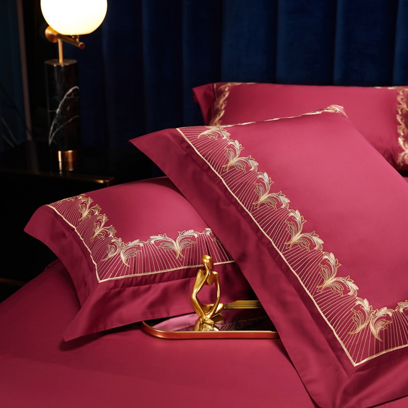 缔缦 2022新款100s刺绣四件套米兰印象 酒红