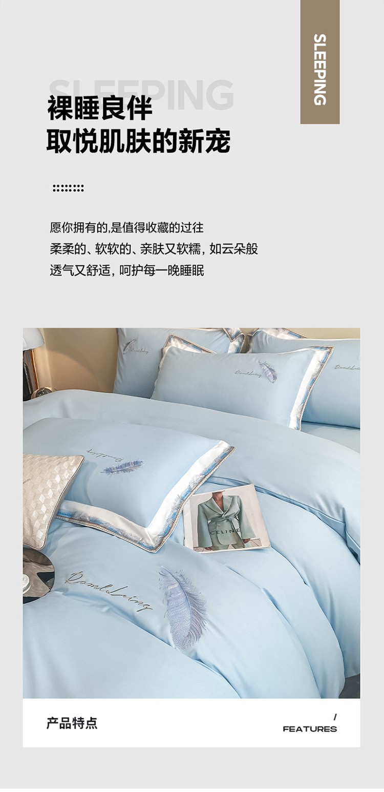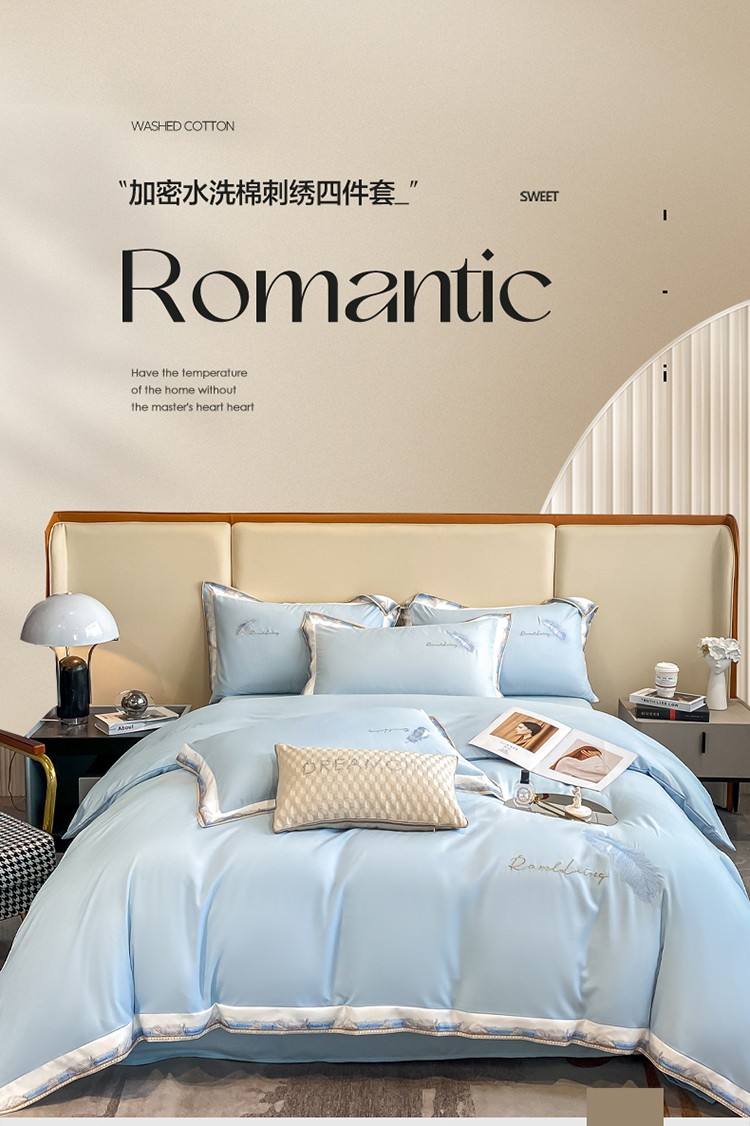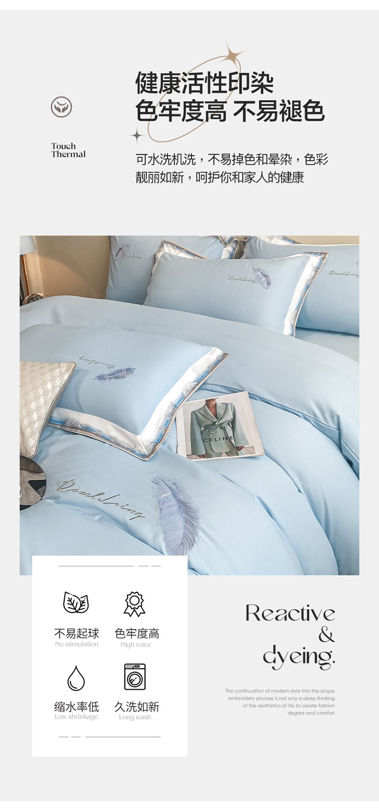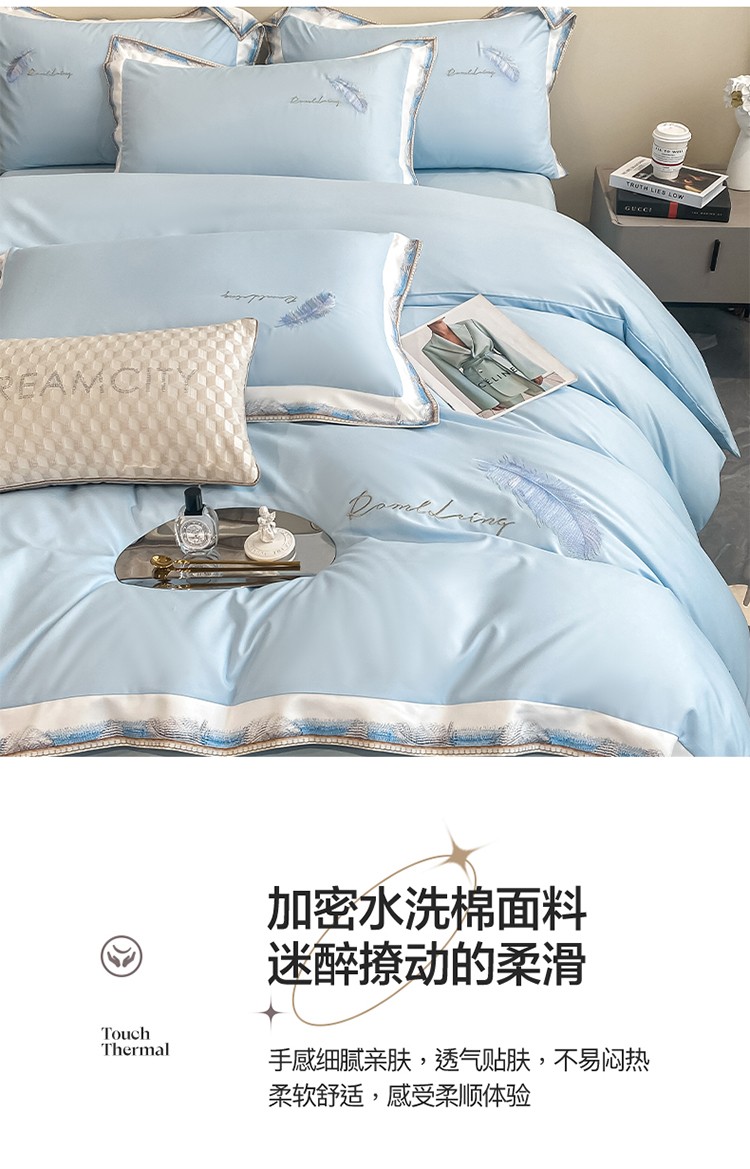 商品名称:花愿2023新款加密水洗棉刺绣四件套 天空蓝