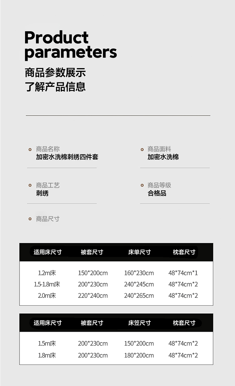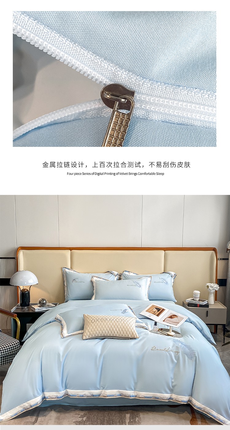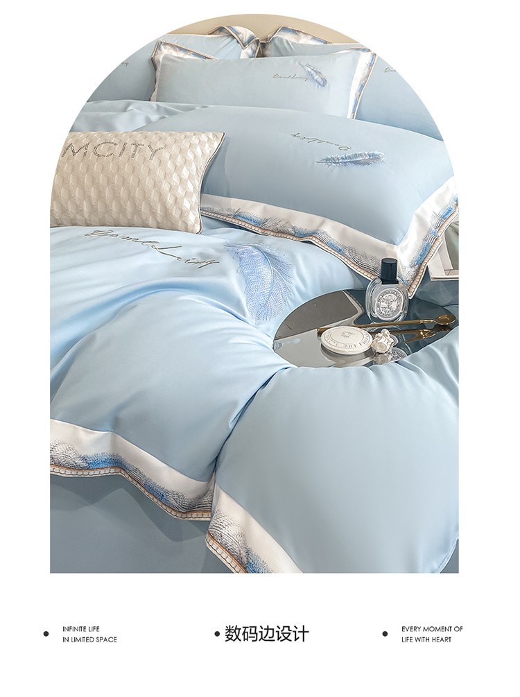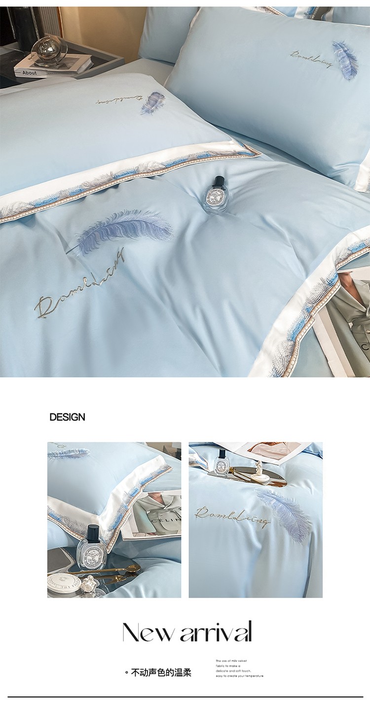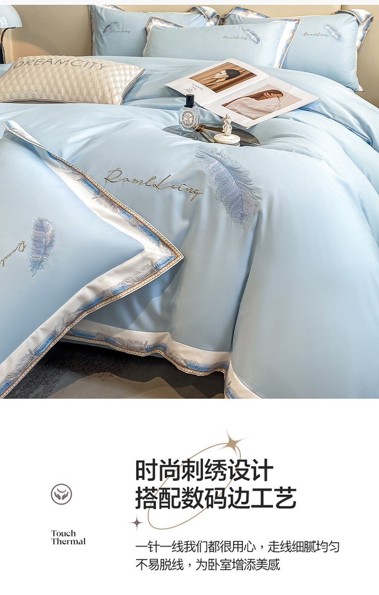 商品名称:花愿2023新款加密水洗棉刺绣四件套 天空蓝