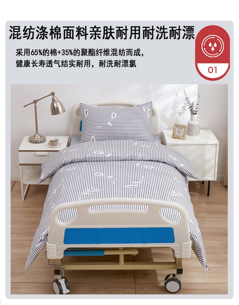商品名称:啊雅 2025耐氯漂涤棉医护床上用品医院三件套 诊所黑条