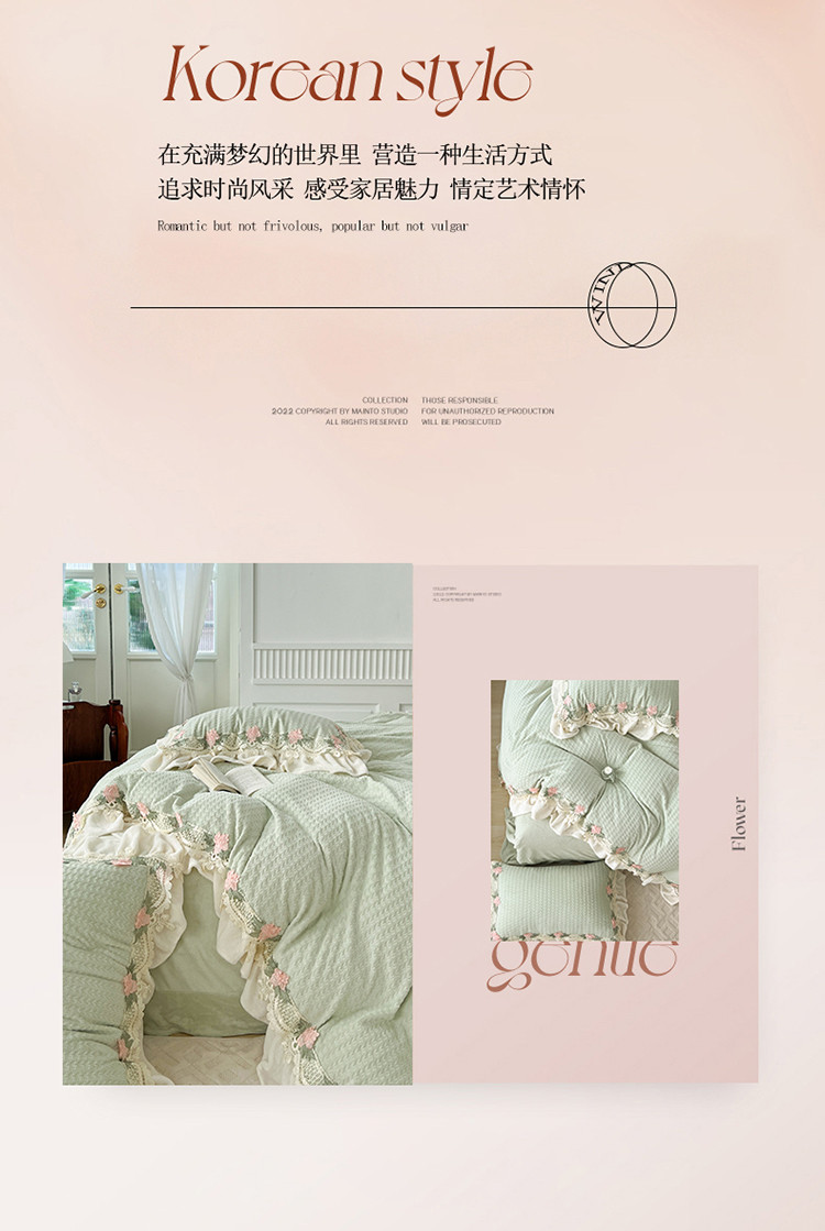 (总)玛奇朵 2025新款韩系少女全棉立体提花四件套-,青纱粉黛
