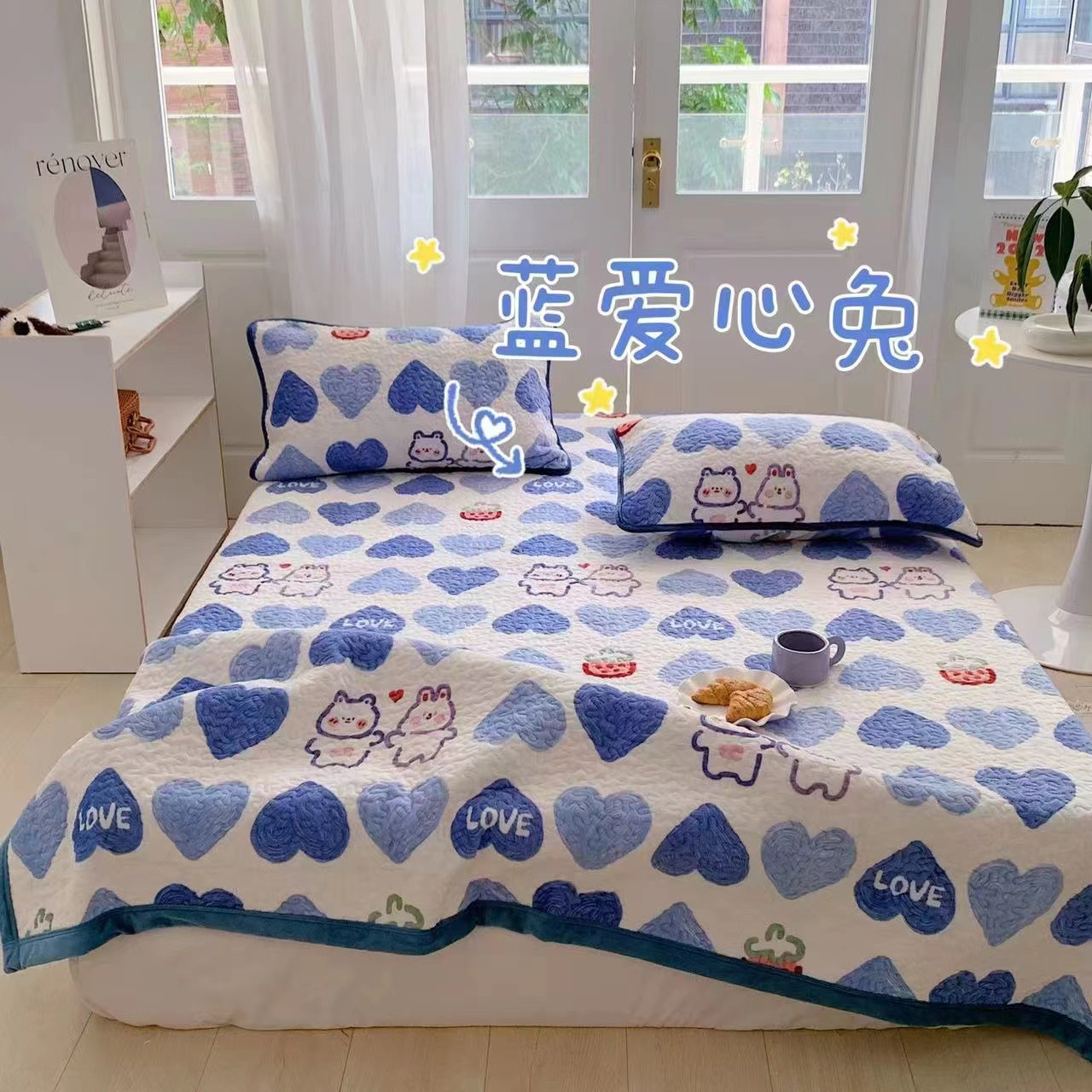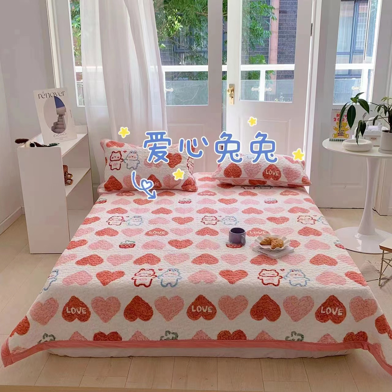 (总)赫梵茜 2025新款高温砂洗全棉床盖单品床盖床盖单件床盖三件套【可搭配同款春秋被】,小猫咪,安哥拉,斑马纹,半岛紫,半夏,格子爱心粉,格子爱心灰,款款诗意粉,款款诗意蓝,腊肠伙伴,奶呼兔兔,奶油波点,塞纳河畔