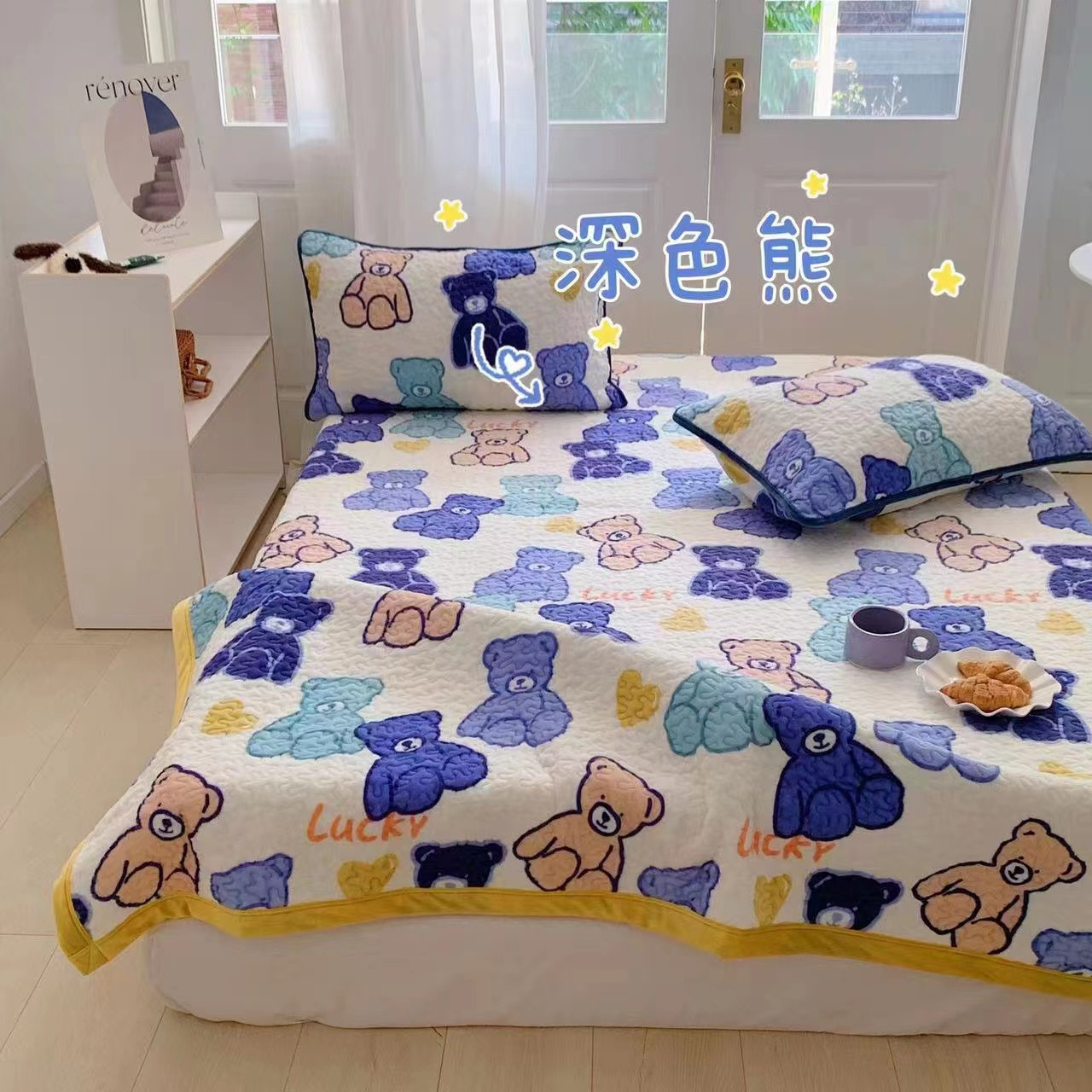 (总)赫梵茜 2025新款云朵棉萌宠刺绣毛巾绣单床盖单品床盖床盖单件床盖三件套,小女孩,好朋友,恐龙,熊猫,月亮兔子,组合图仅做展示