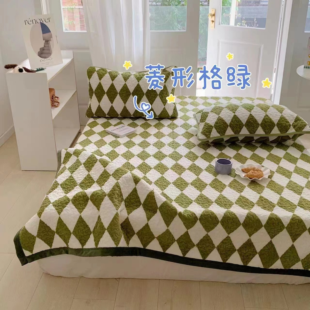 (总)赫梵茜 2025新款经典小格纹云朵棉格子款学生床盖单品床盖床盖单件三件套,组合图仅做展示,绿格,粉格,青绿,黄格,黑格,蓝格,紫格