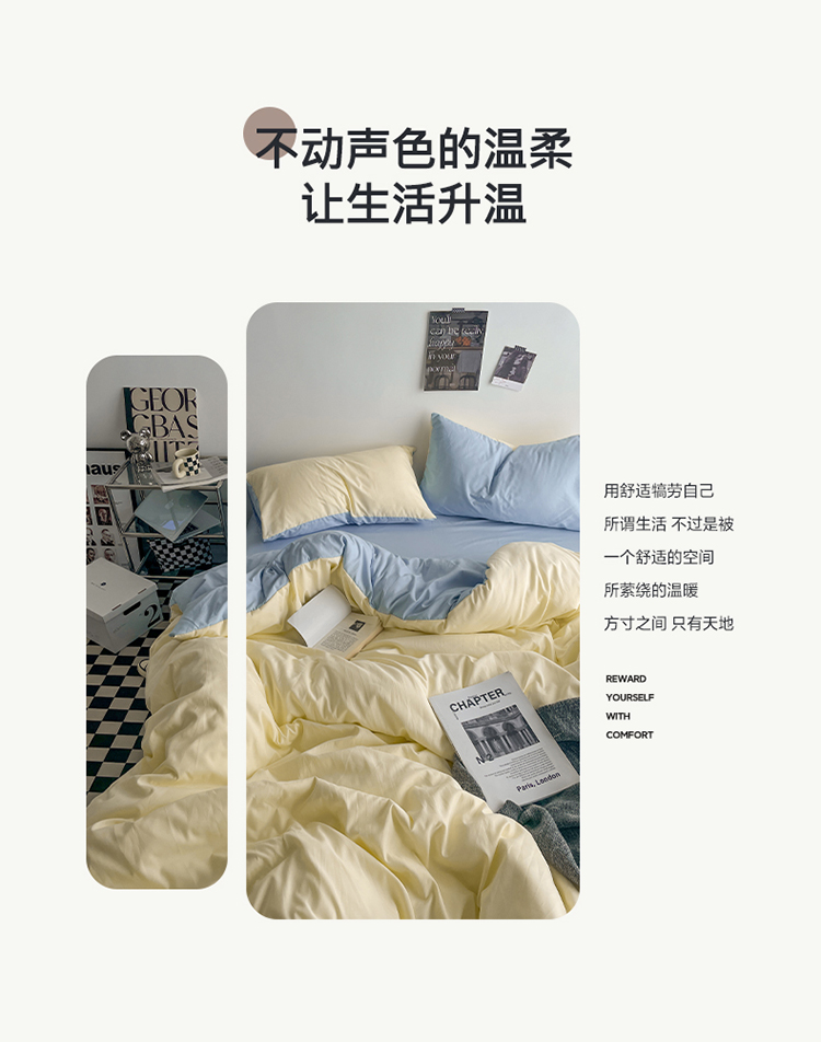 当前位置: 91家纺网 > 商品网购 > 床品套件 > 四件套 > 全棉普通四件套 > 贝拉梦 2023亲肤棉简约风纯色双拼105g四件套芝士海盐