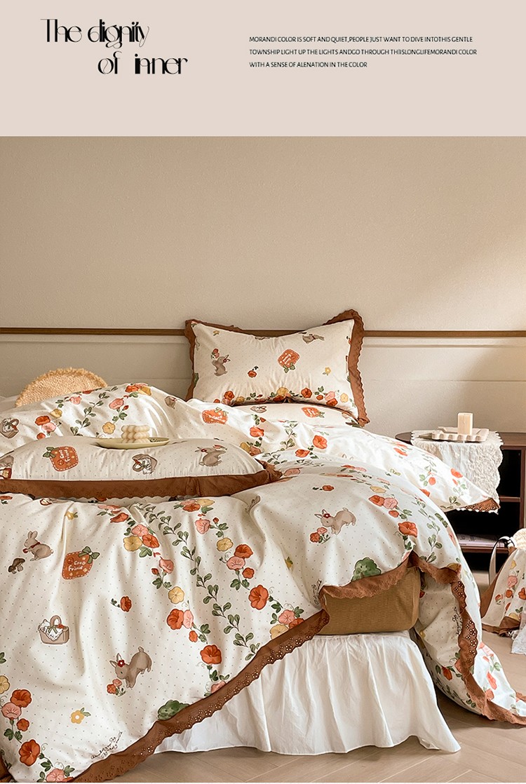 (总)蓝邻家纺 2024新款小清新印花全棉四件套学生宿舍三件套,茶园兔,风翩,机灵兔熊,可妮露,藤蔓兔,筱薇