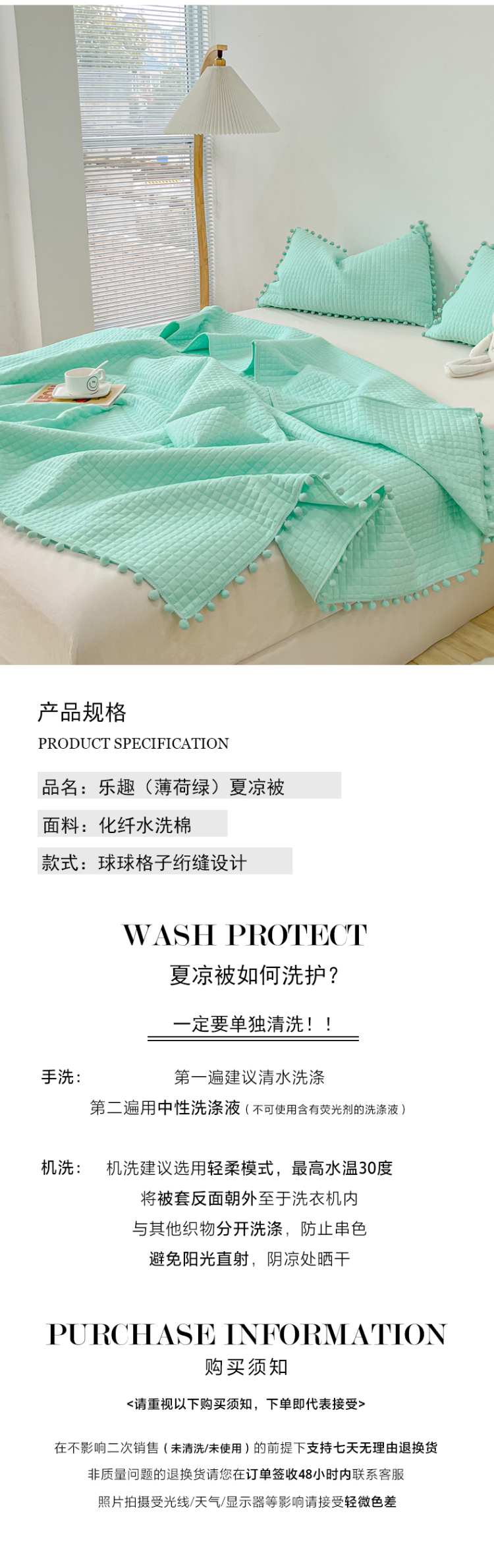 商品名称:乐卧2026新款球球边夏凉被-乐趣 乐趣-薄荷绿