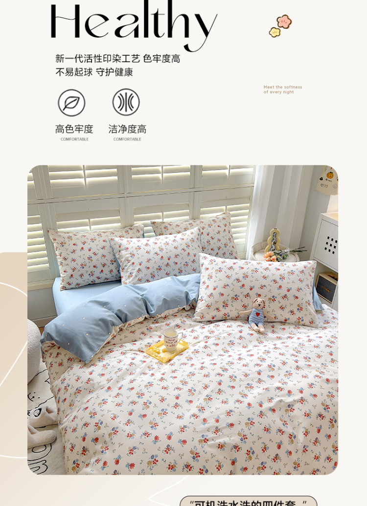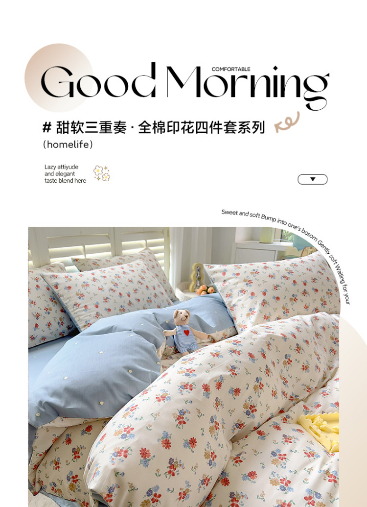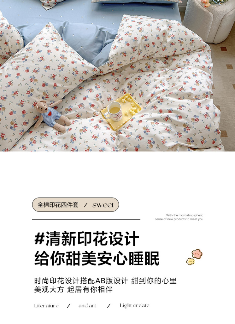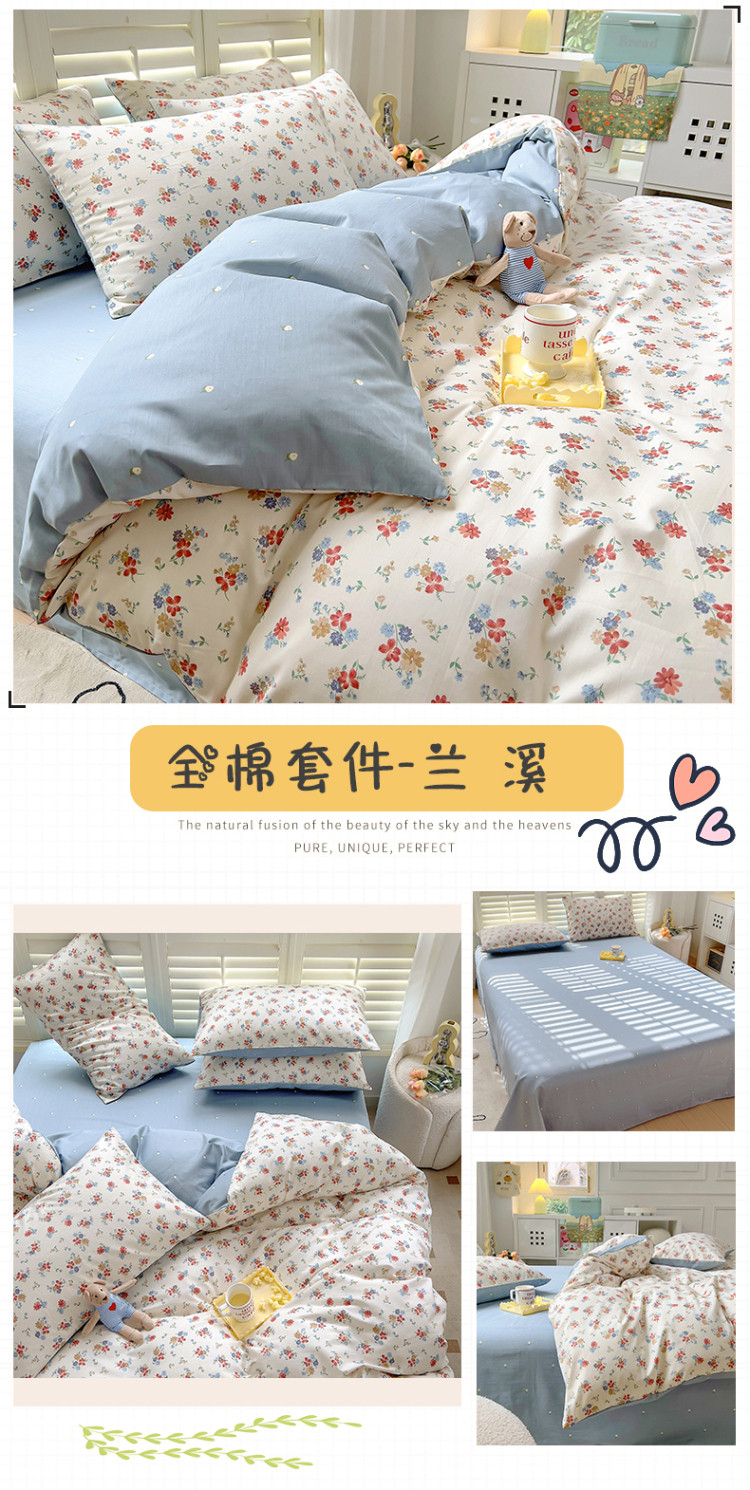 当前位置: 91家纺网 > 商品网购 > 床品套件 > 四件套 > 全棉普通四件套 > 百寐 2024小清新碎花卡通13372全棉四件套纯棉床单床笠款 兰溪