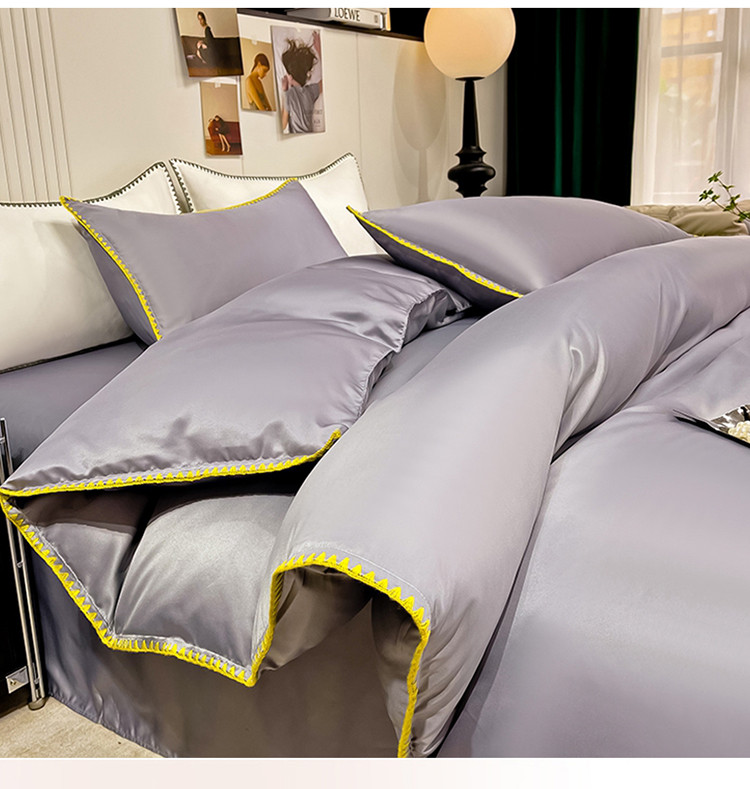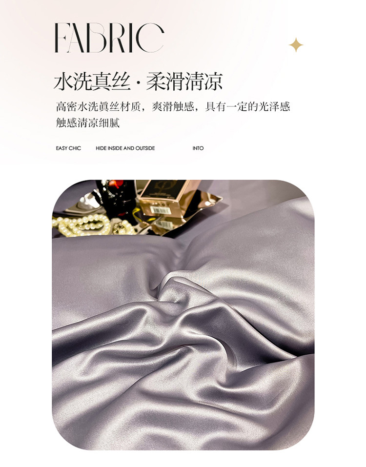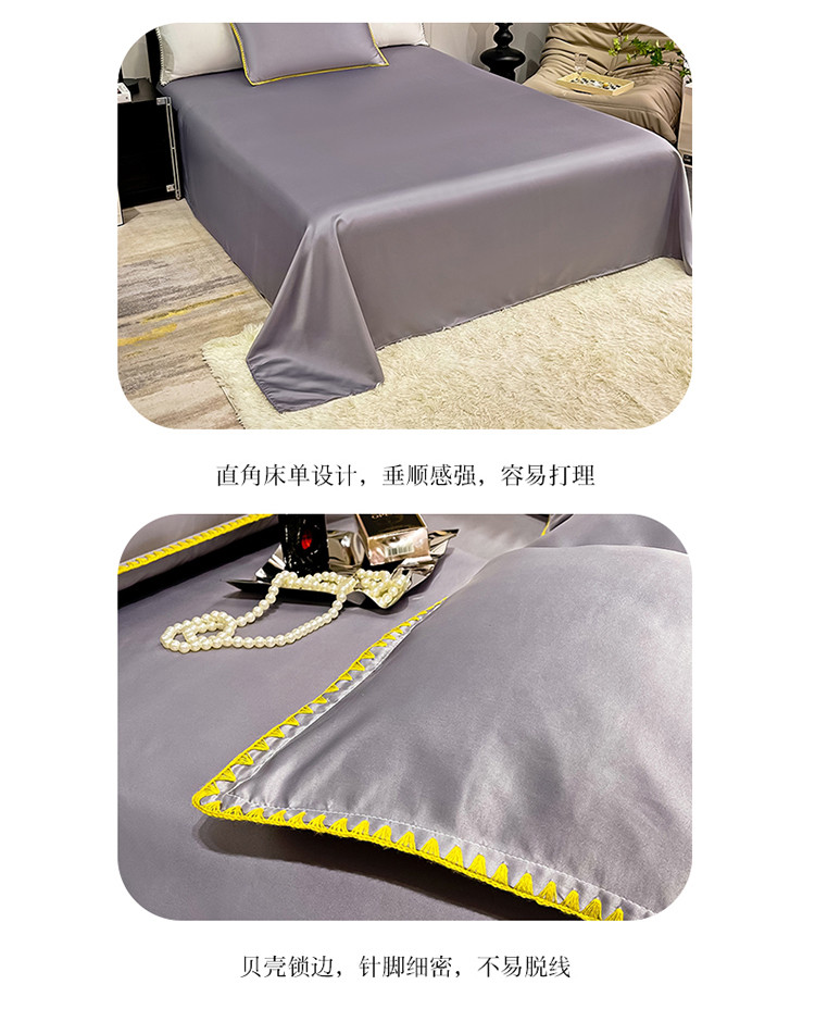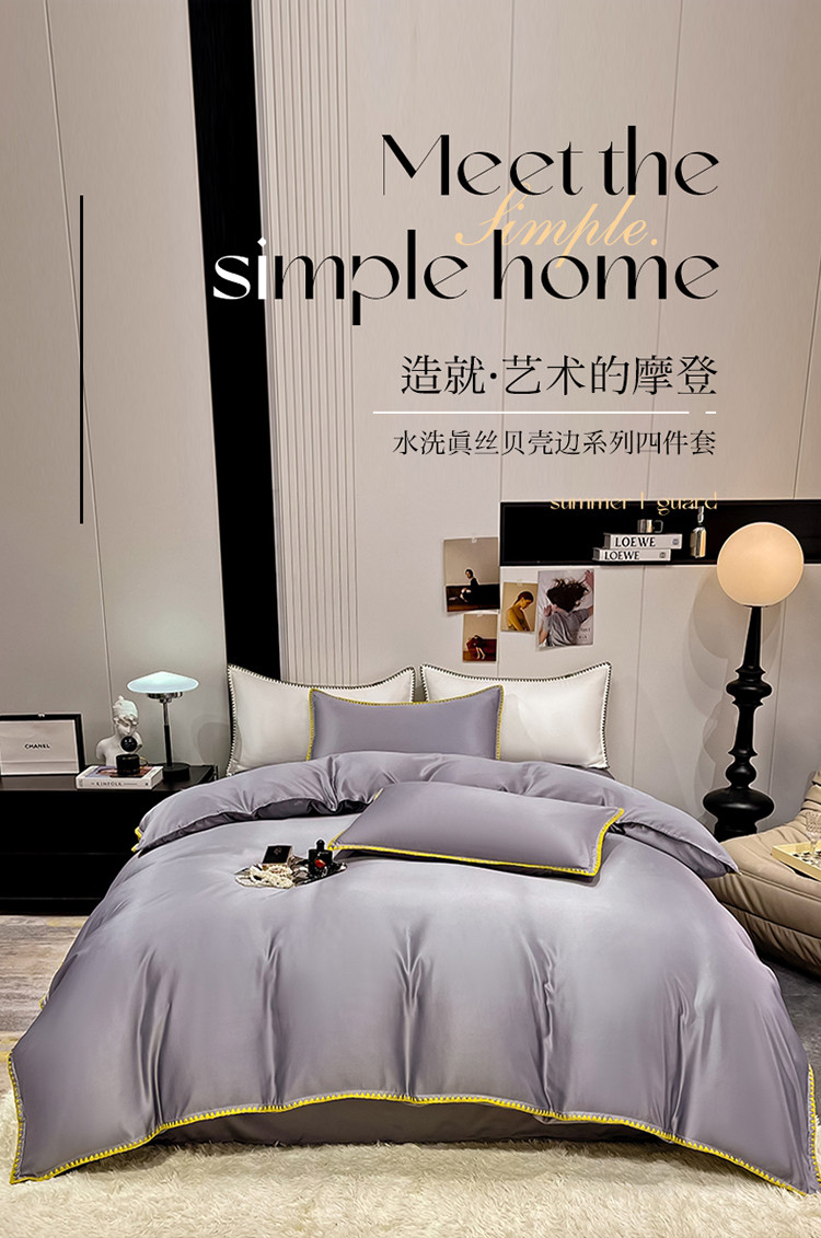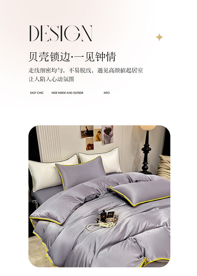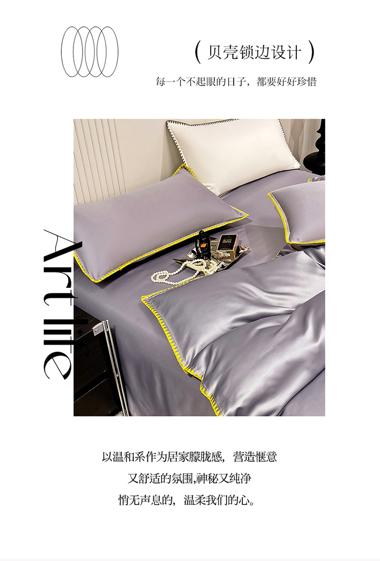 商品名称:艾米家居 2025新款水洗真丝贝壳边系列四件套 灰色