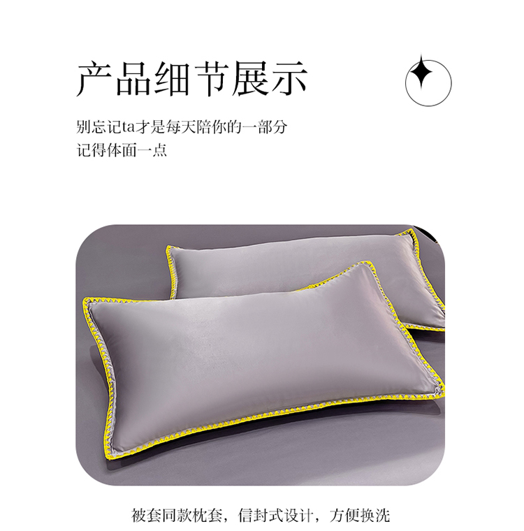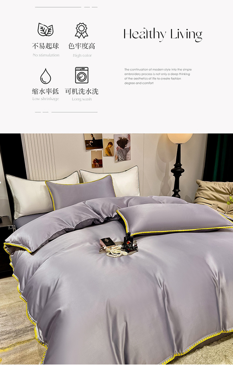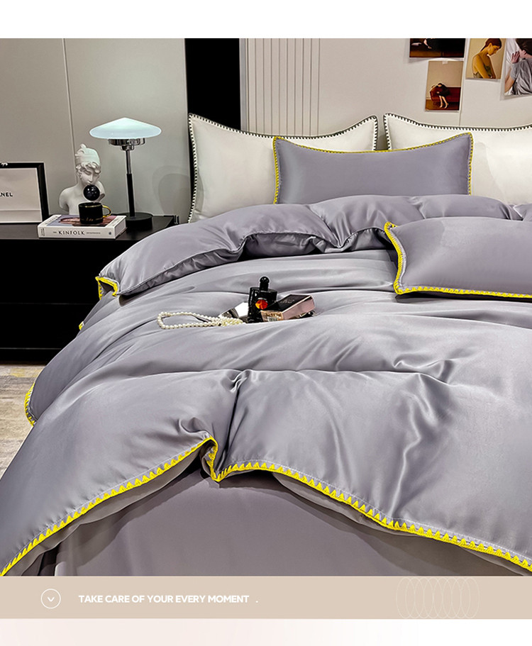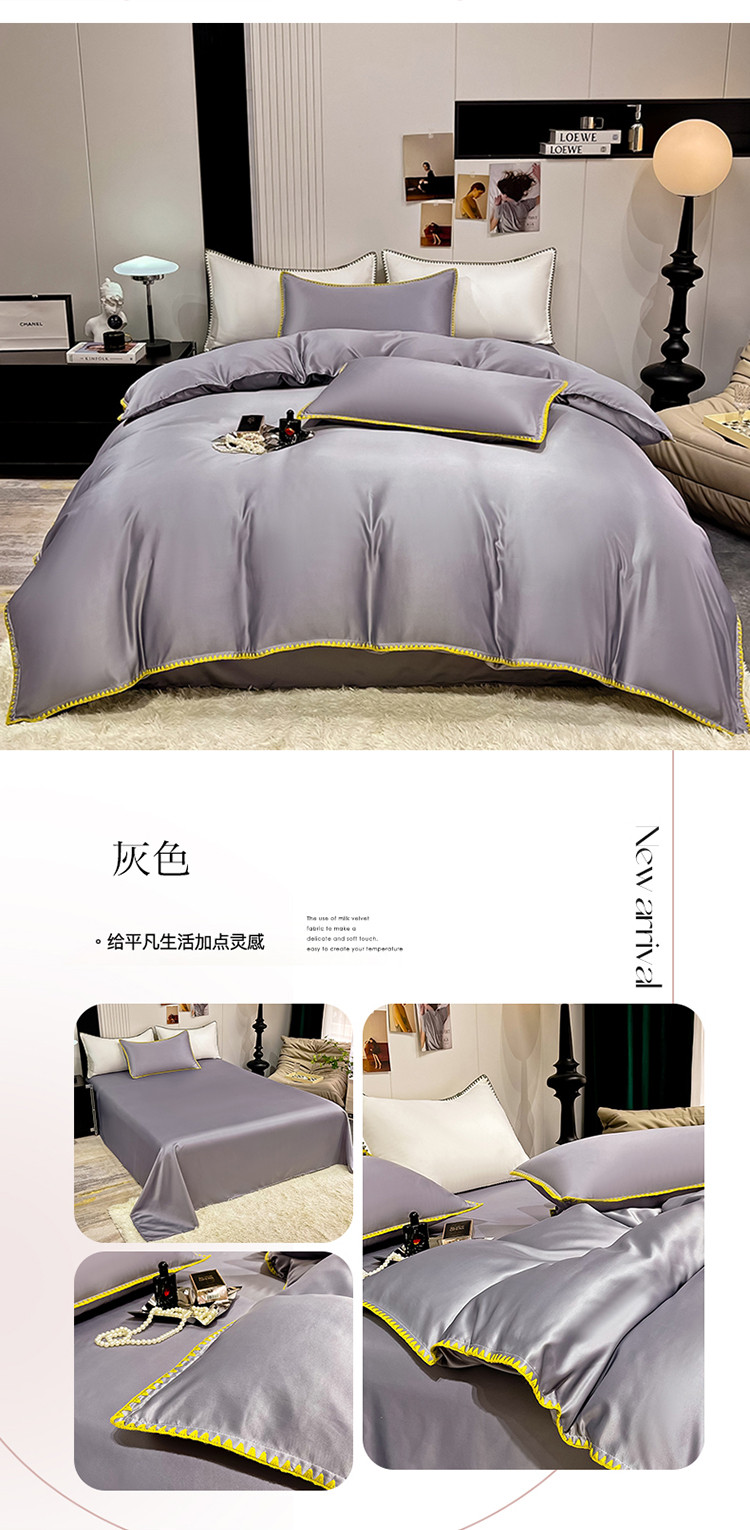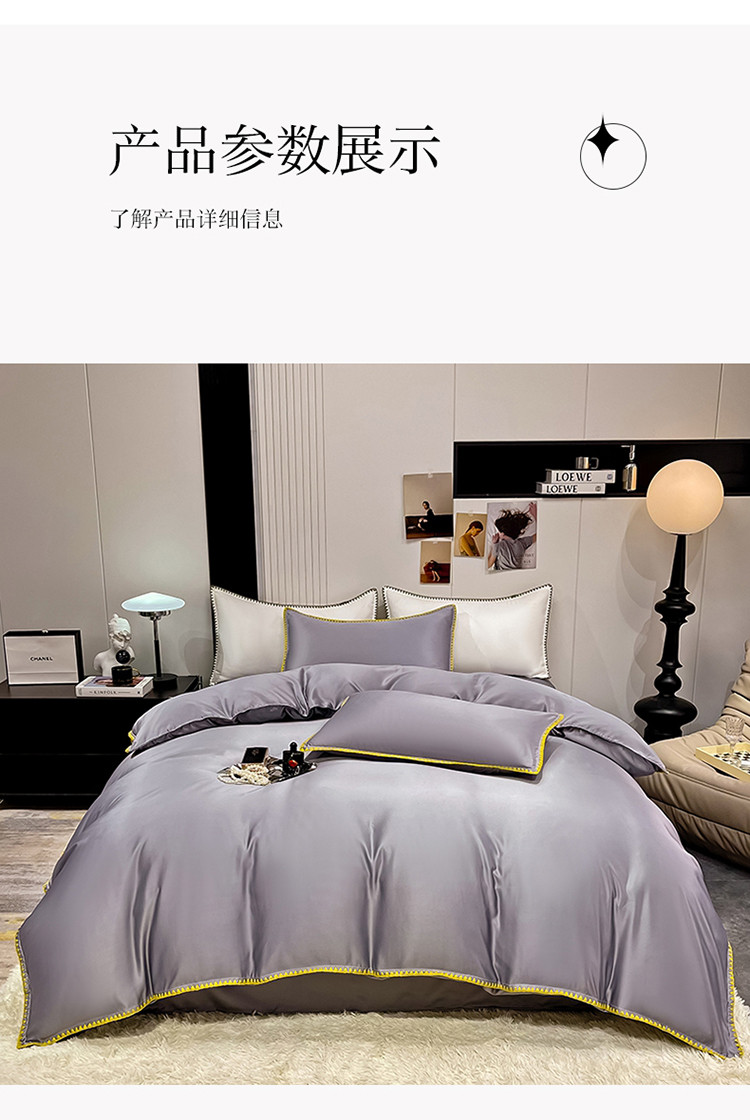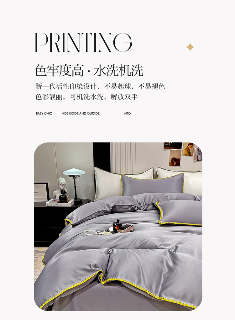 商品名称:艾米家居 2025新款水洗真丝贝壳边系列四件套 灰色