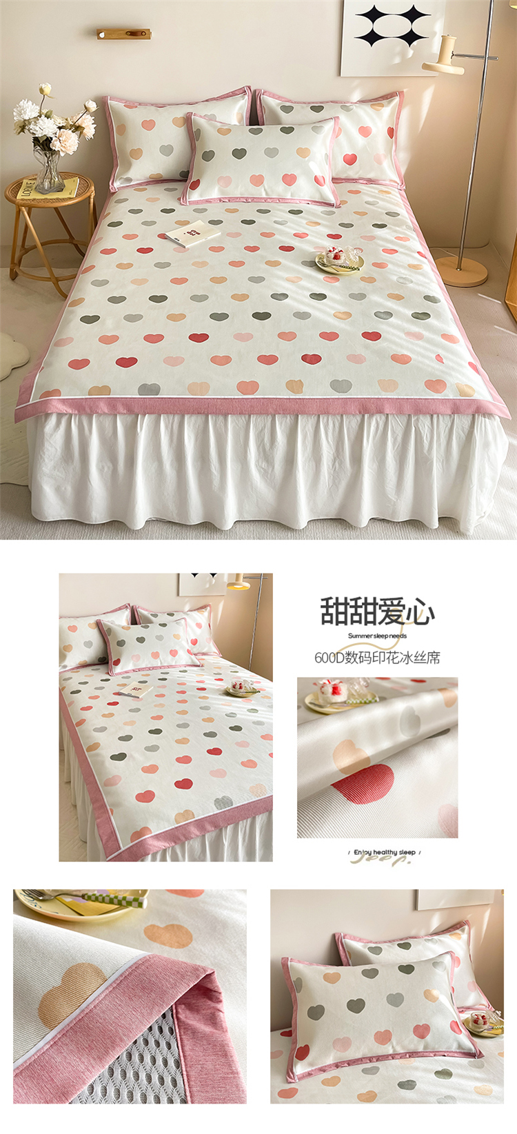 商品名称:懒猫 2024新款600D数码印花冰丝席 甜甜爱心
