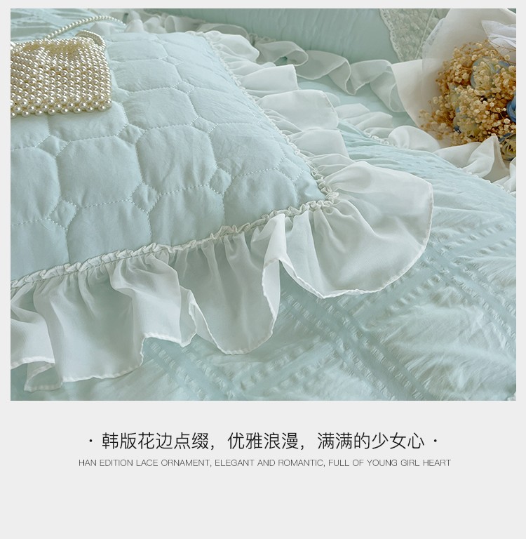 商品名称:罗艺轩 2024新款 泡泡纱夹棉床裙白雪公主系列四件套 天空蓝