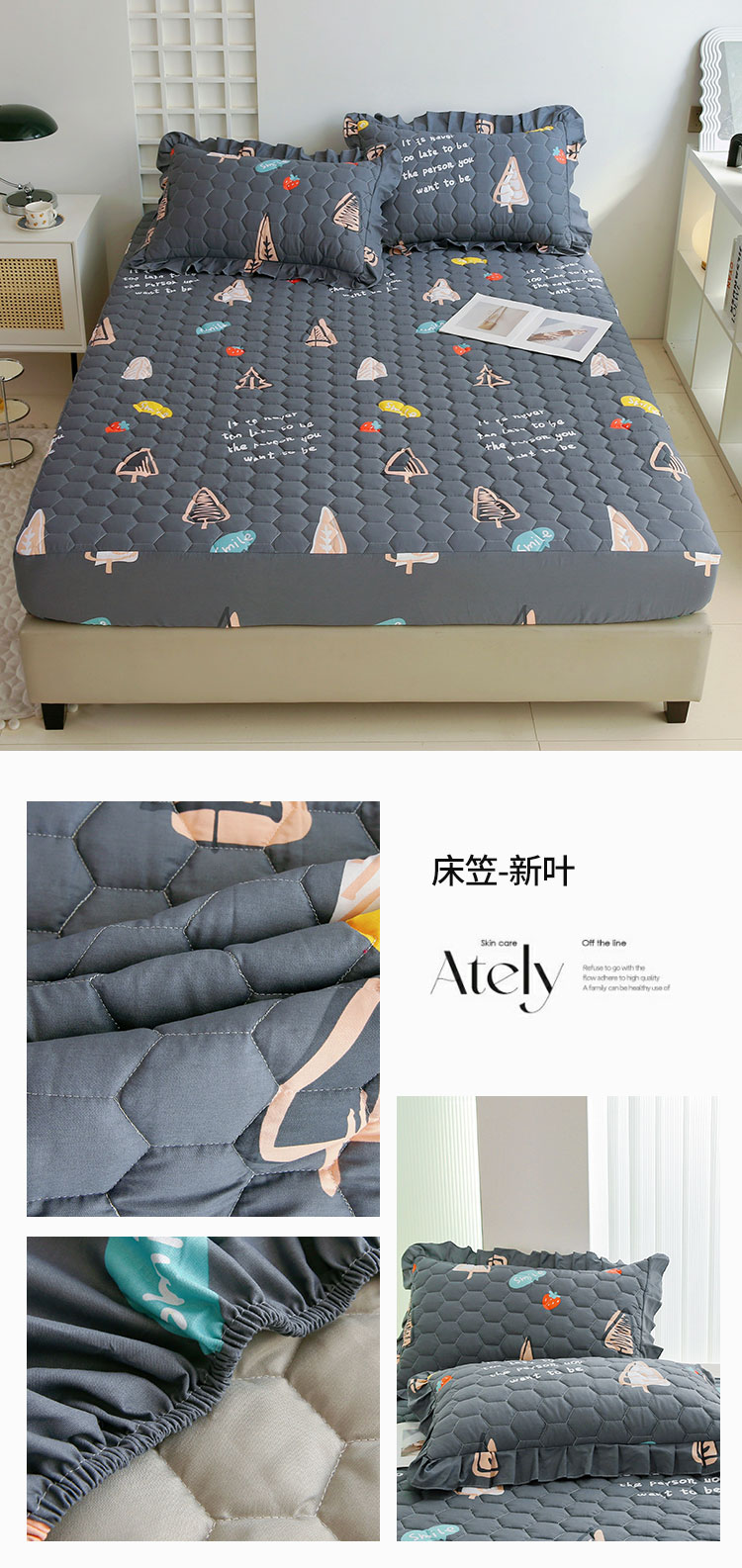 • 91家纺网 家纺一手货源 找家纺 情煊 2023新款全棉夹棉纯色印花床笠款(可定制尺寸) 床笠-新叶