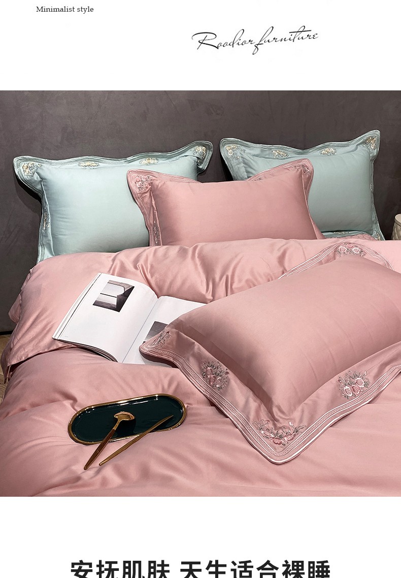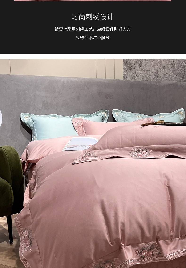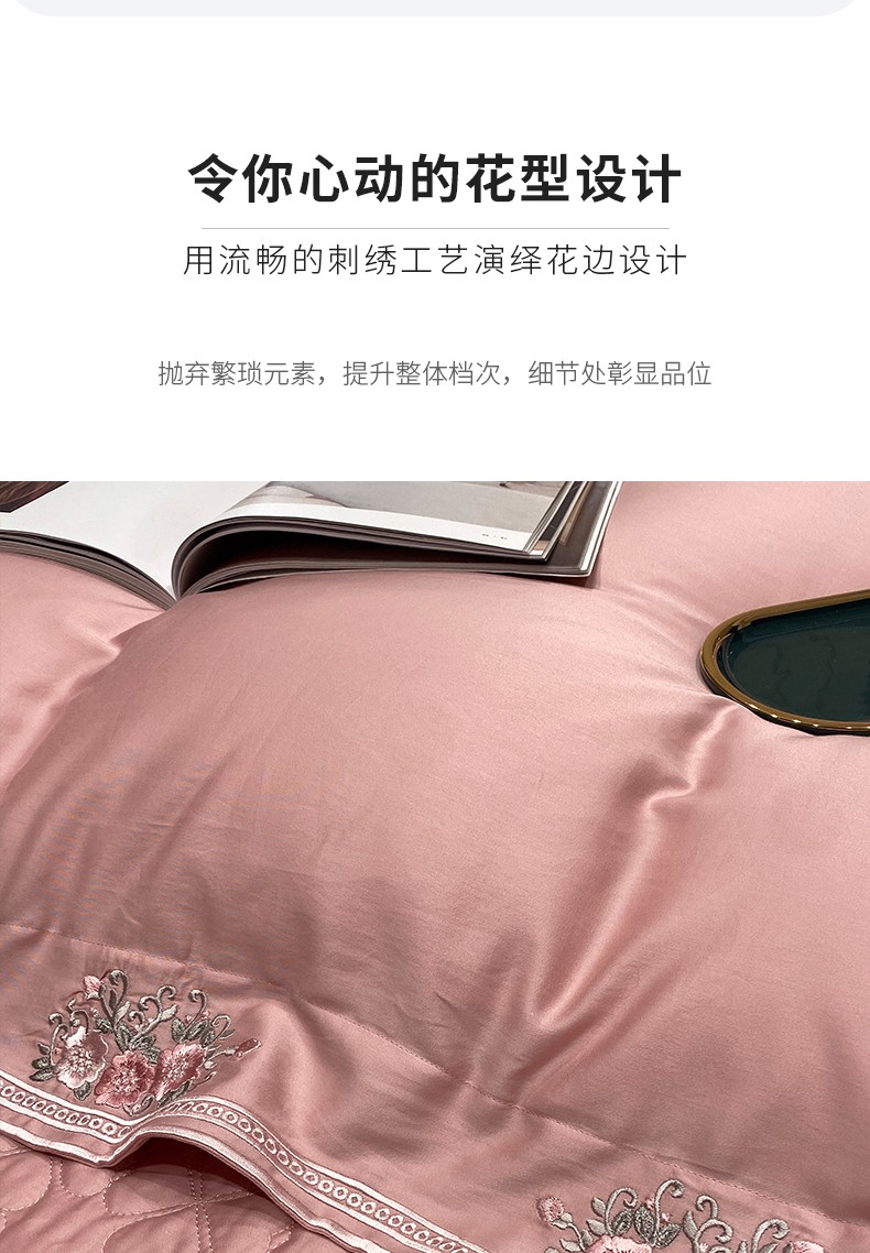 美娘阁2023新款长绒棉刺绣居家款四件套 邂逅(豆沙)