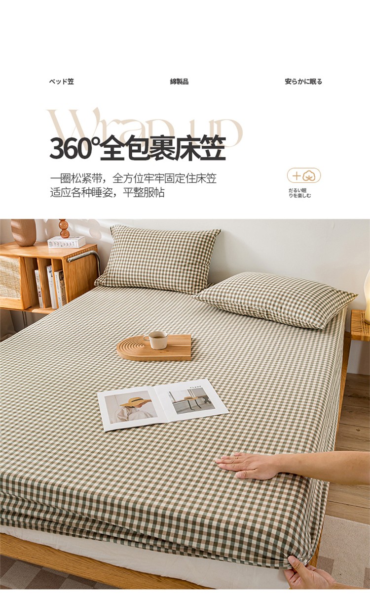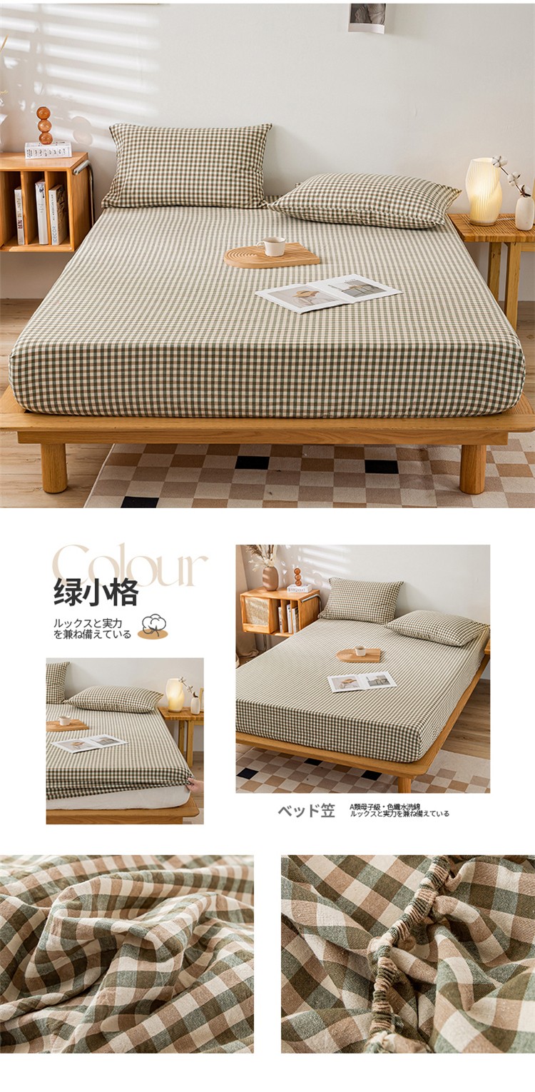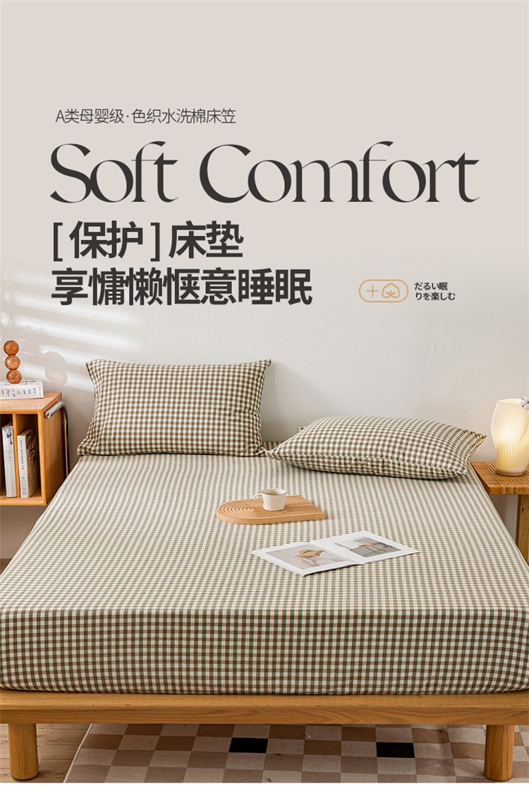 九沐良品 新款A类色织水洗棉床笠 绿小格