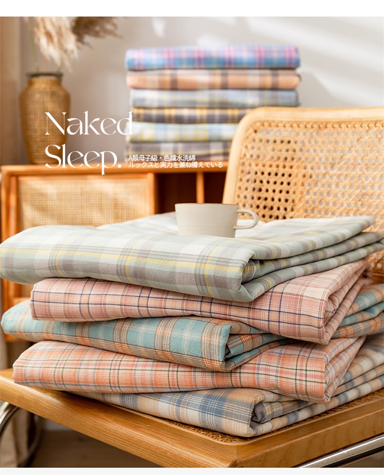 (总)九沐良品 2025新款全棉色织水洗棉无印风四件套,柏拉图-兰,粉小格,格林粉,灰条,绿大格,米小格,米粽艾青格,莫妮卡粉,莫妮卡兰,浅蓝小格,青春海蓝,希尔威亚蓝,新灰格,星空粉,星空绿,英伦格,中灰条