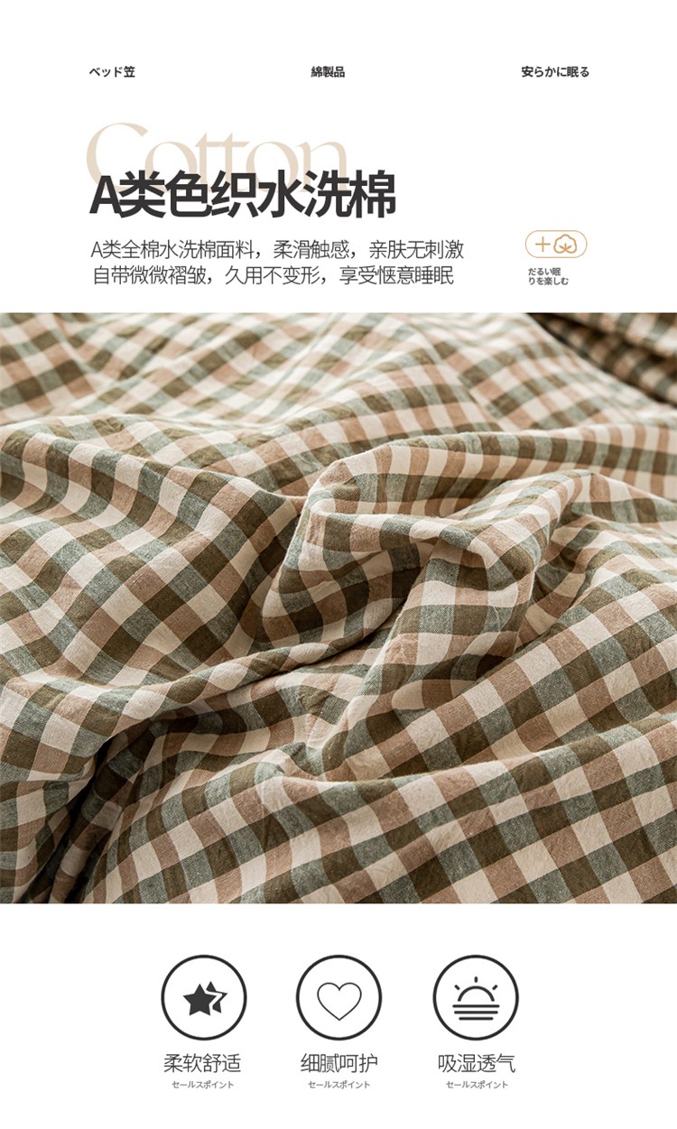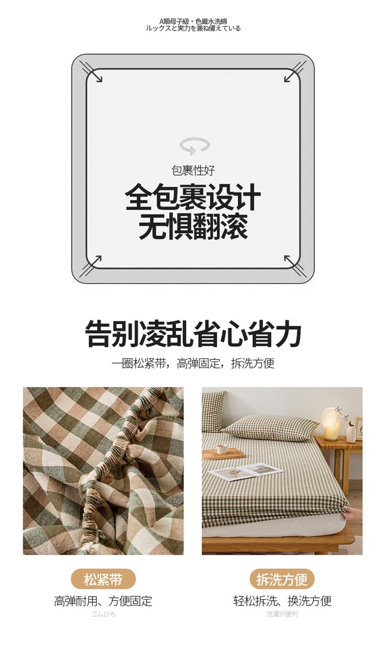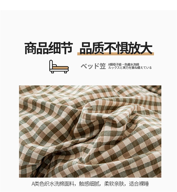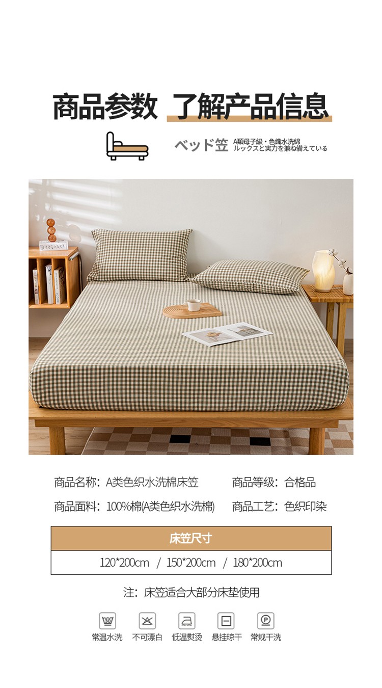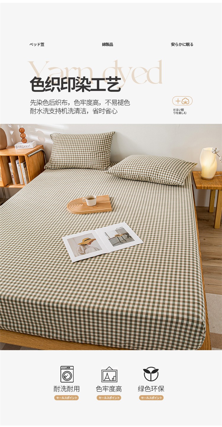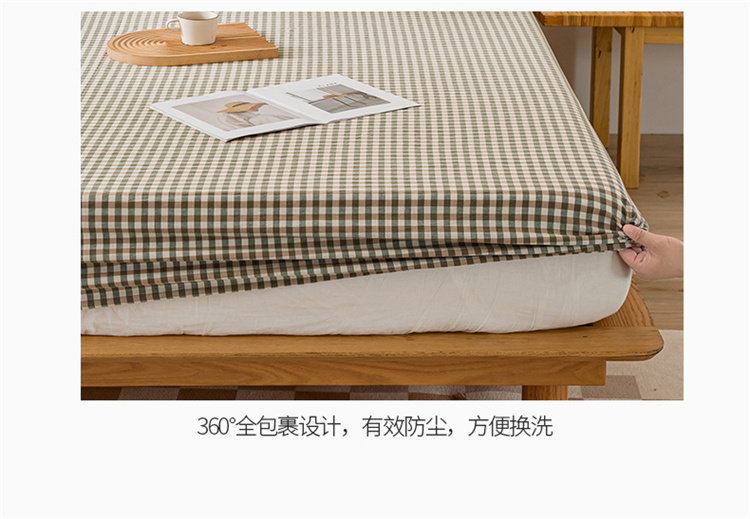 • 91家纺网 家纺一手货源 找家纺 九沐良品 新款A类色织水洗棉床笠 绿小格