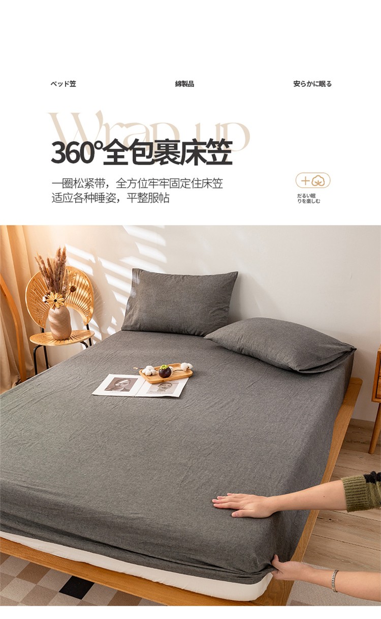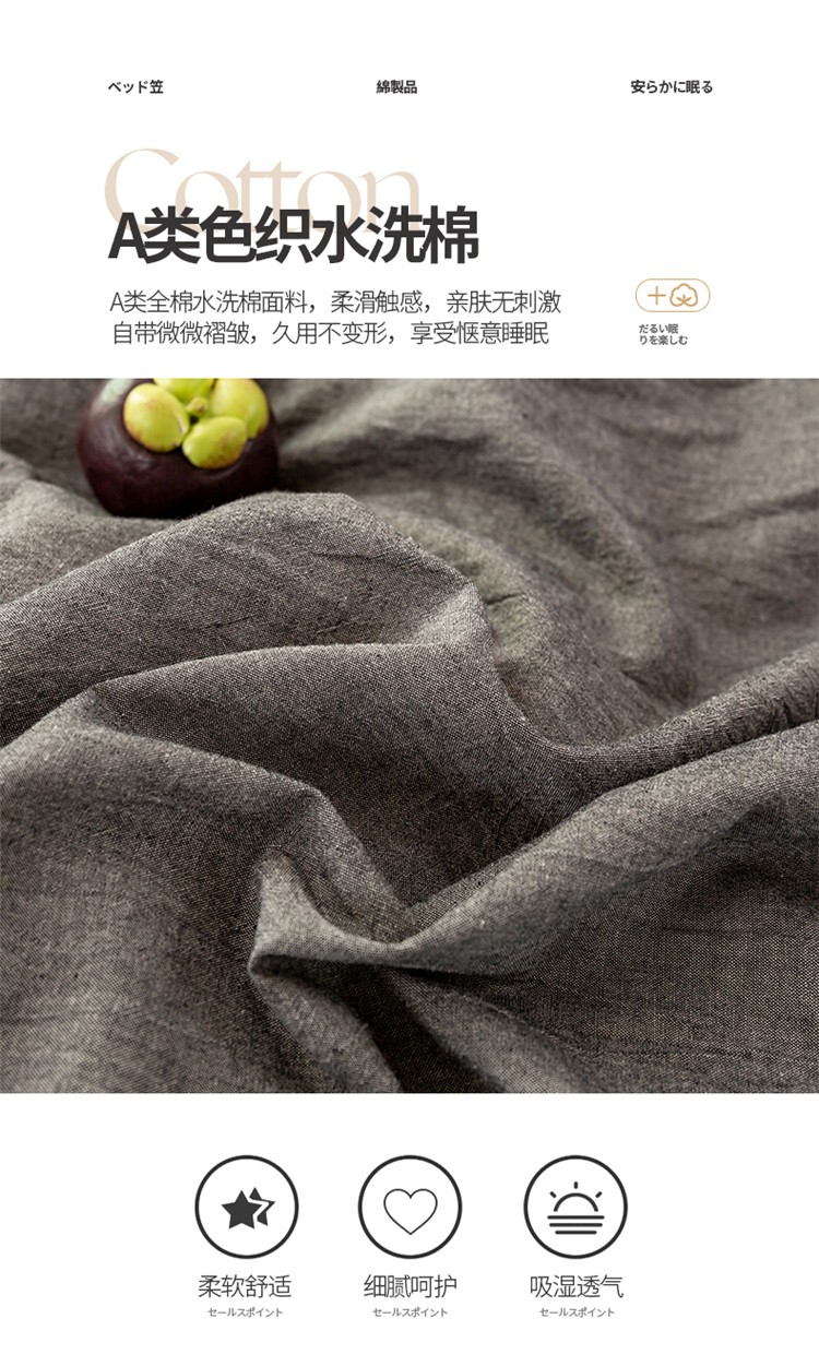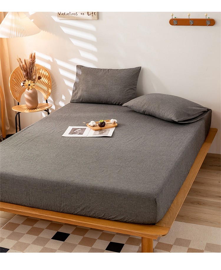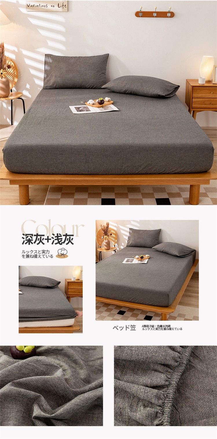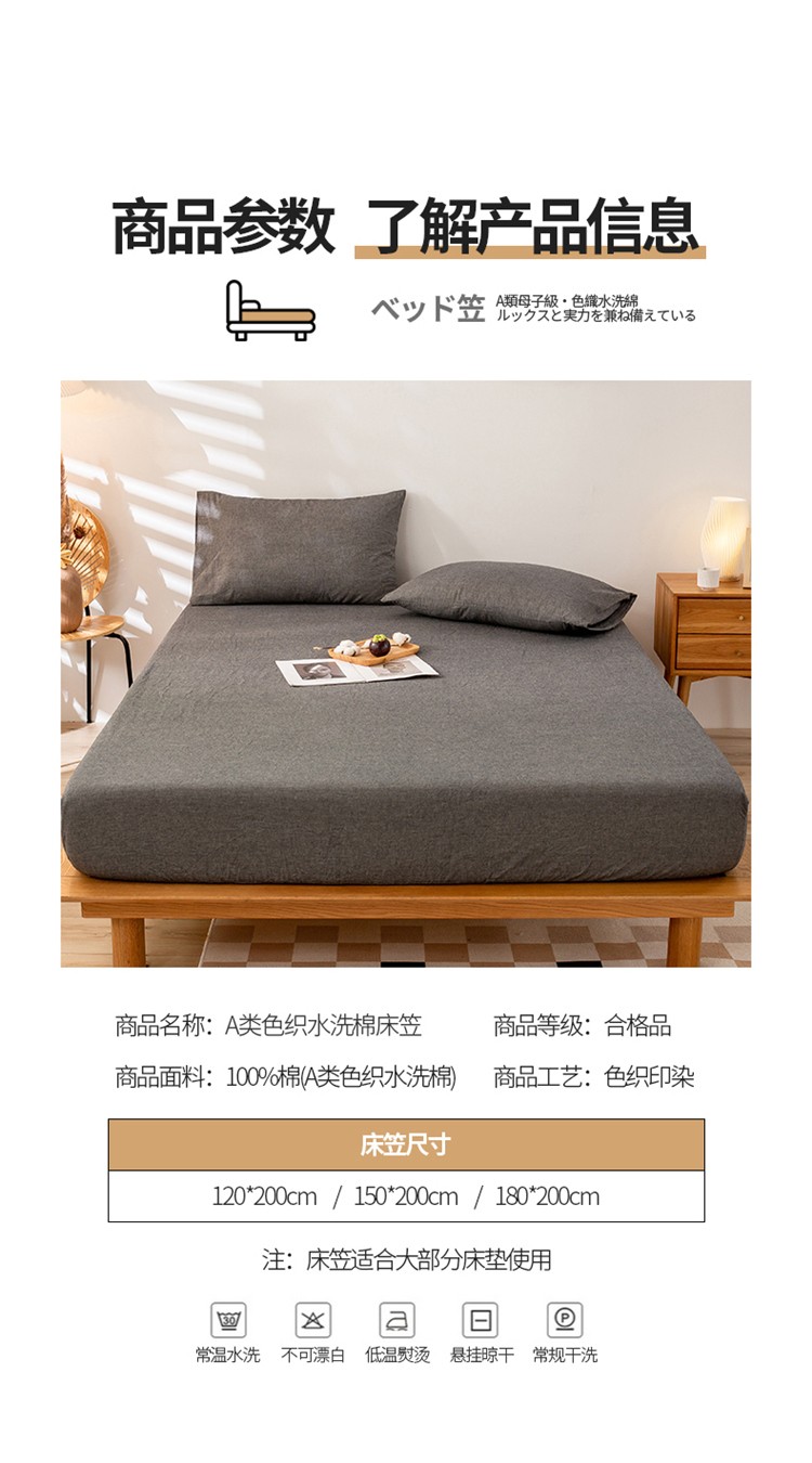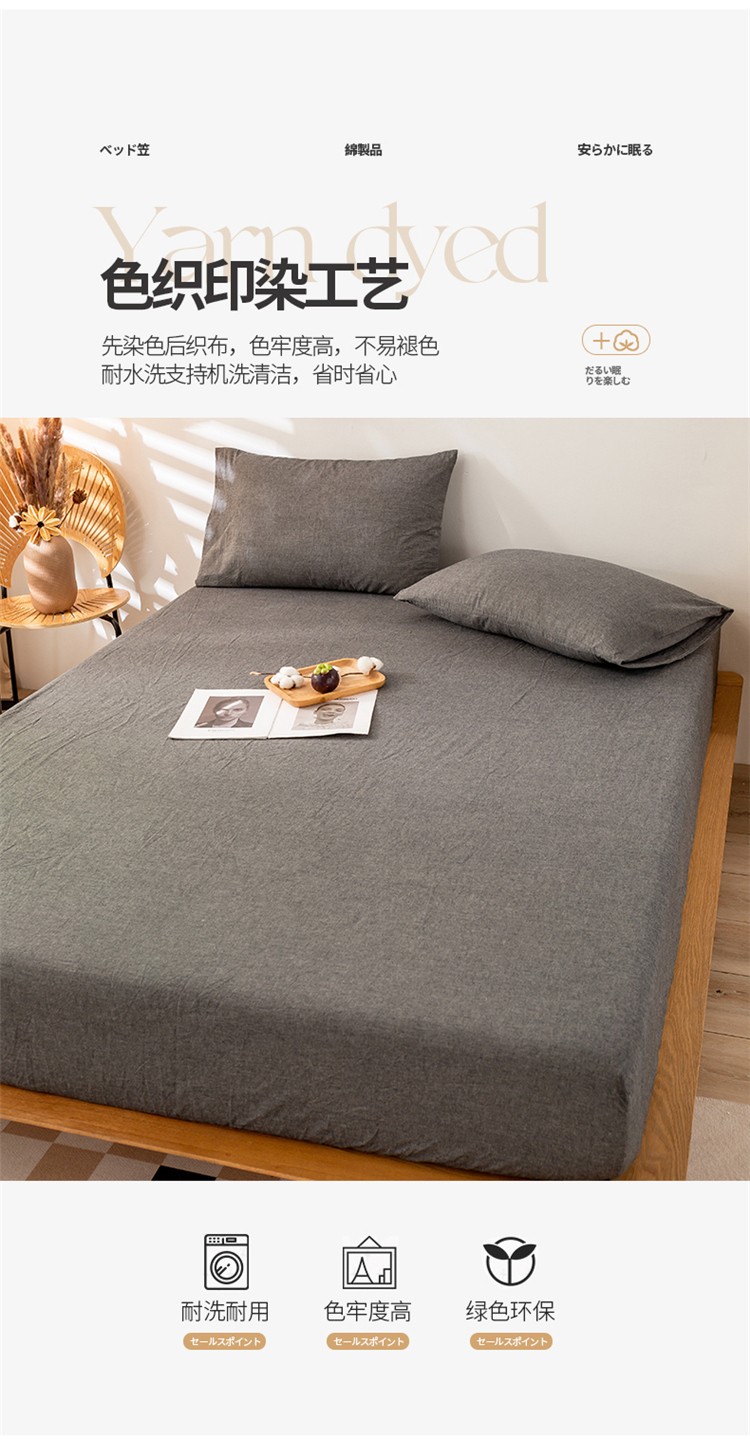 九沐良品 新款A类色织水洗棉床笠 深灰+浅灰