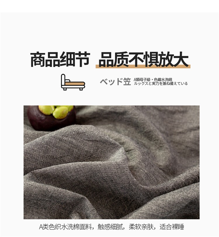 • 91家纺网 家纺一手货源 找家纺 九沐良品 新款A类色织水洗棉床笠 深灰+浅灰