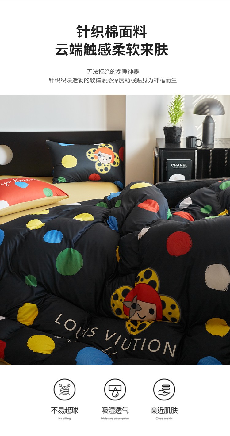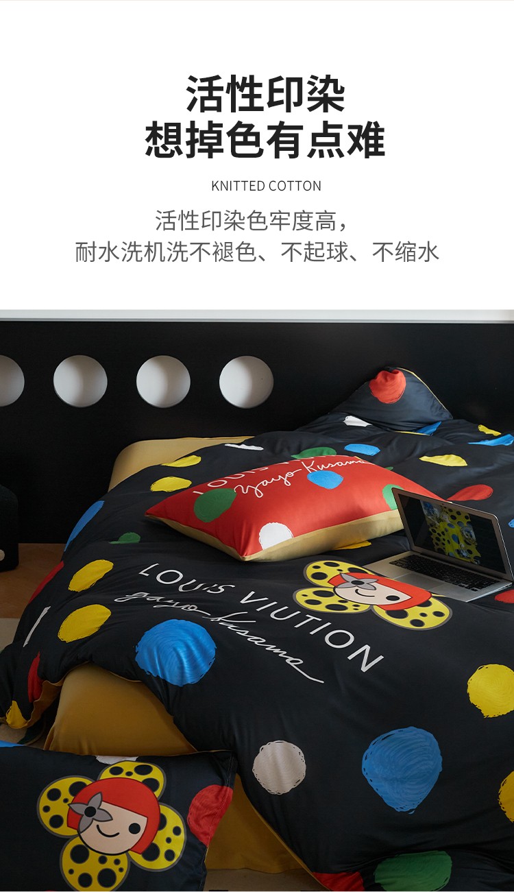 商品名称:花沐2023新款全棉针织棉四件套 波点黑
