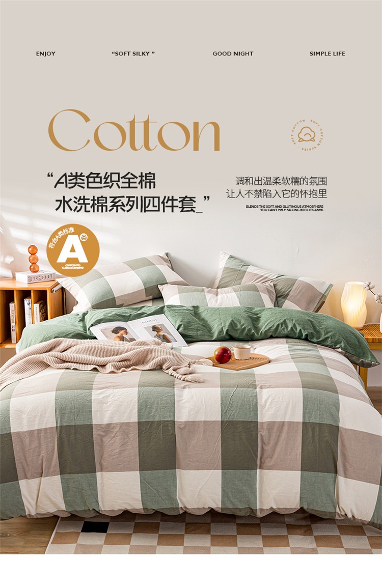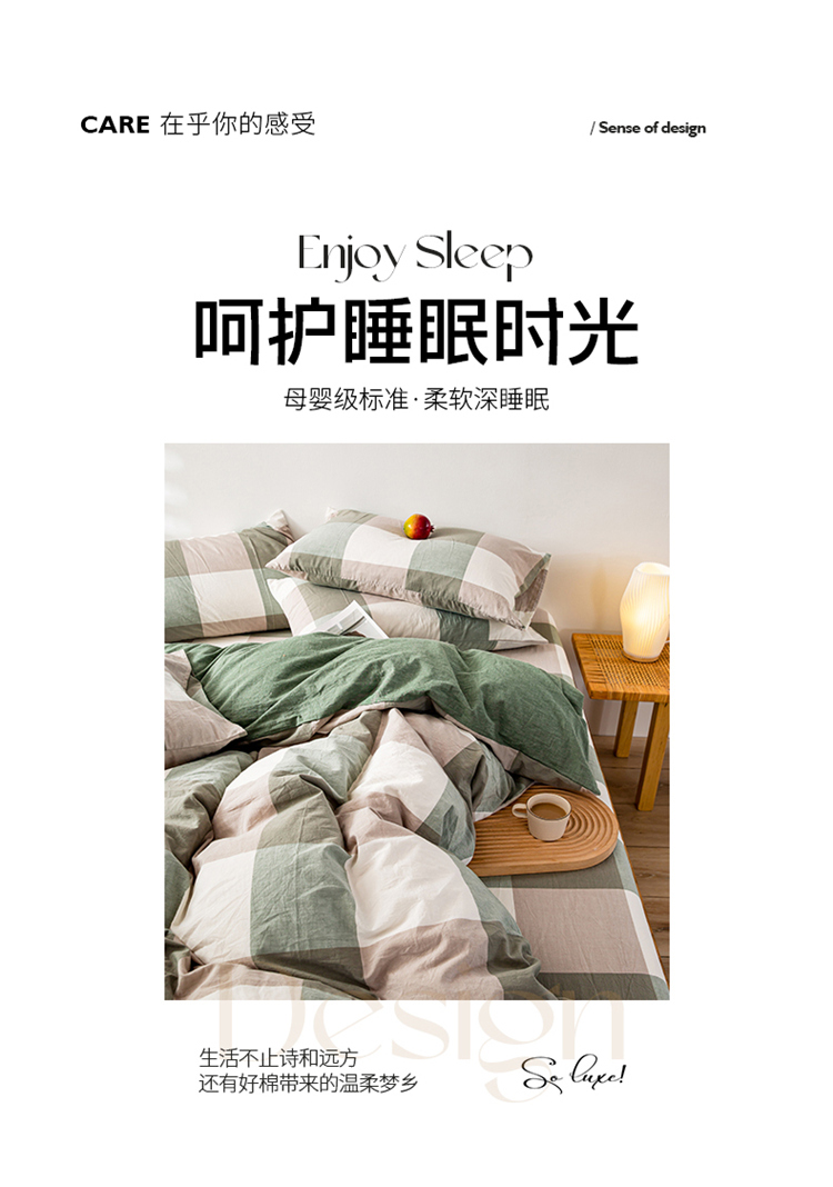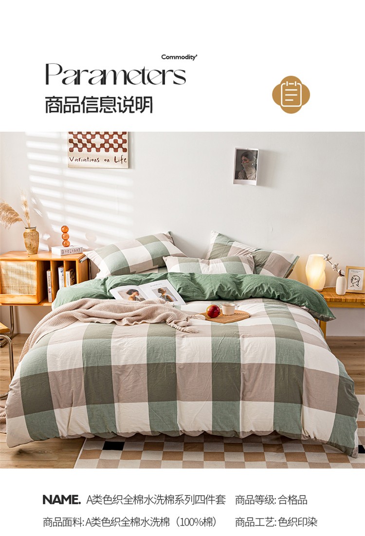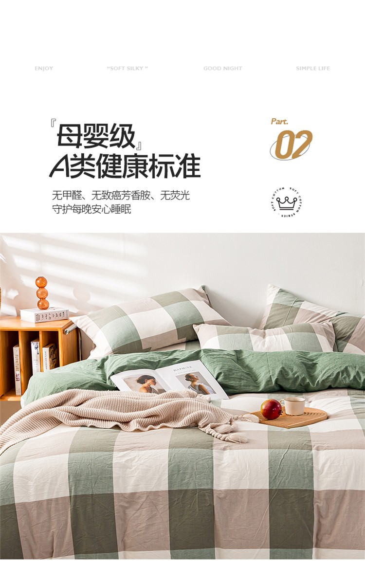 当前位置: 91家纺网 > 商品网购 > 床品套件 > 四件套 > 水洗棉四件套 > 九沐良品 新款A类色织水洗棉四件套 绿大格
