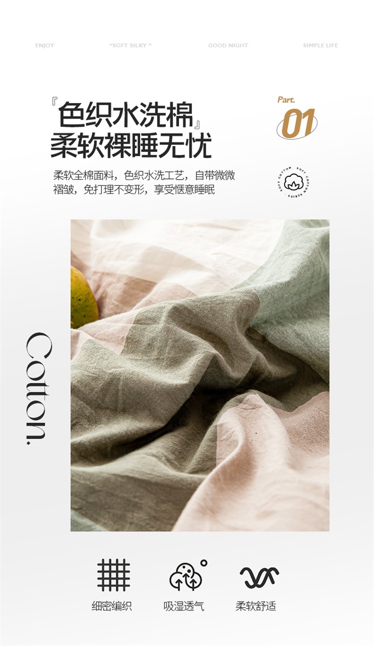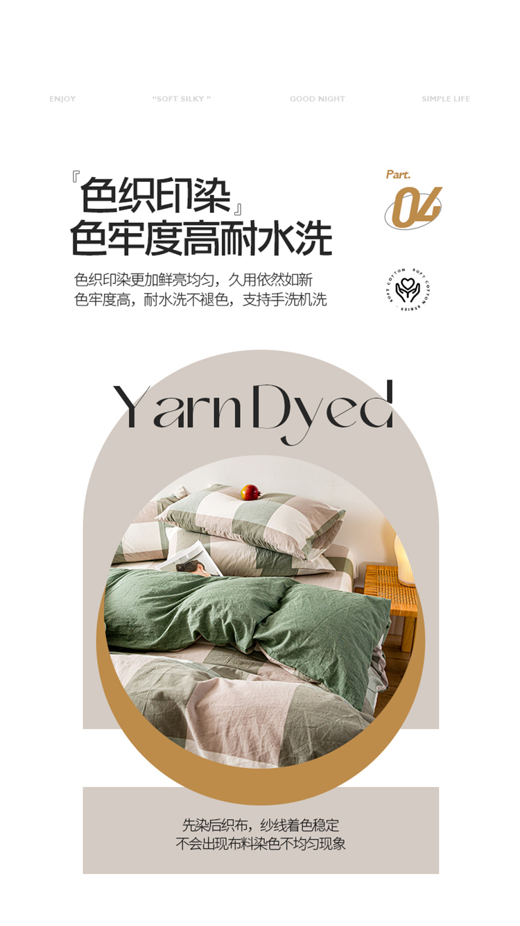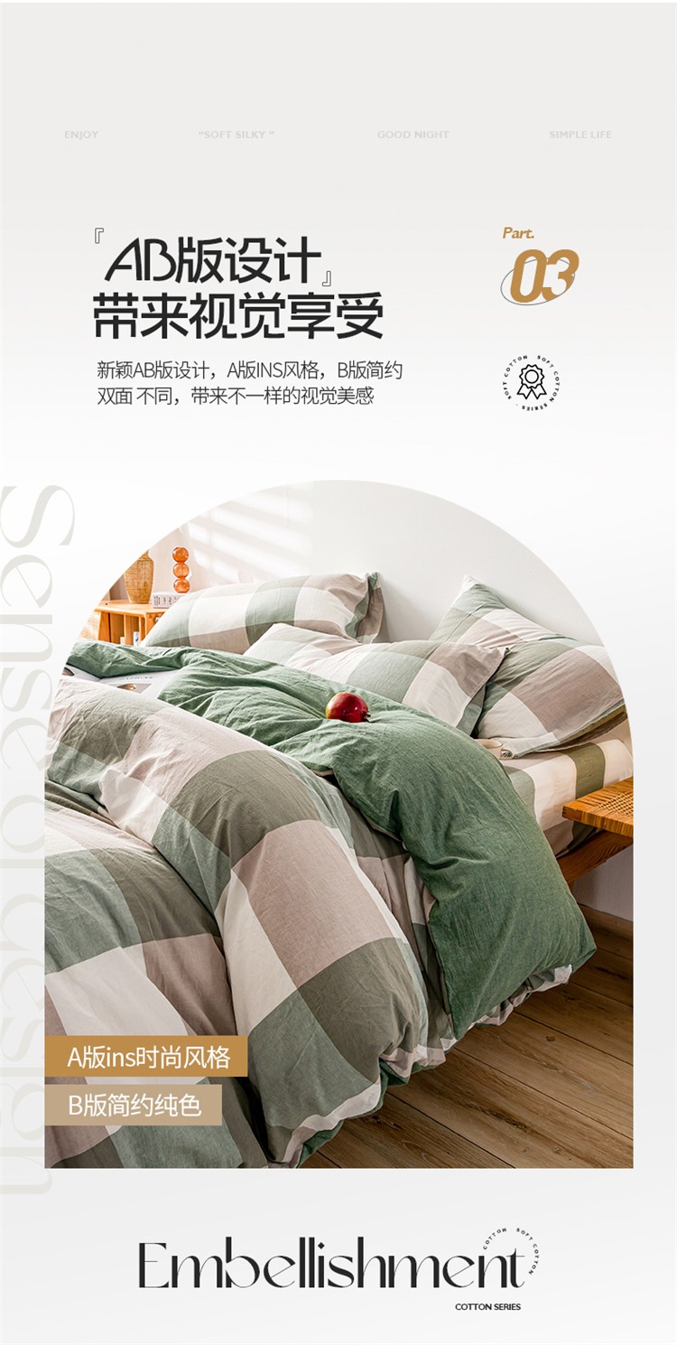 当前位置: 91家纺网 > 商品网购 > 床品套件 > 四件套 > 水洗棉四件套 > 九沐良品 新款A类色织水洗棉四件套 绿大格