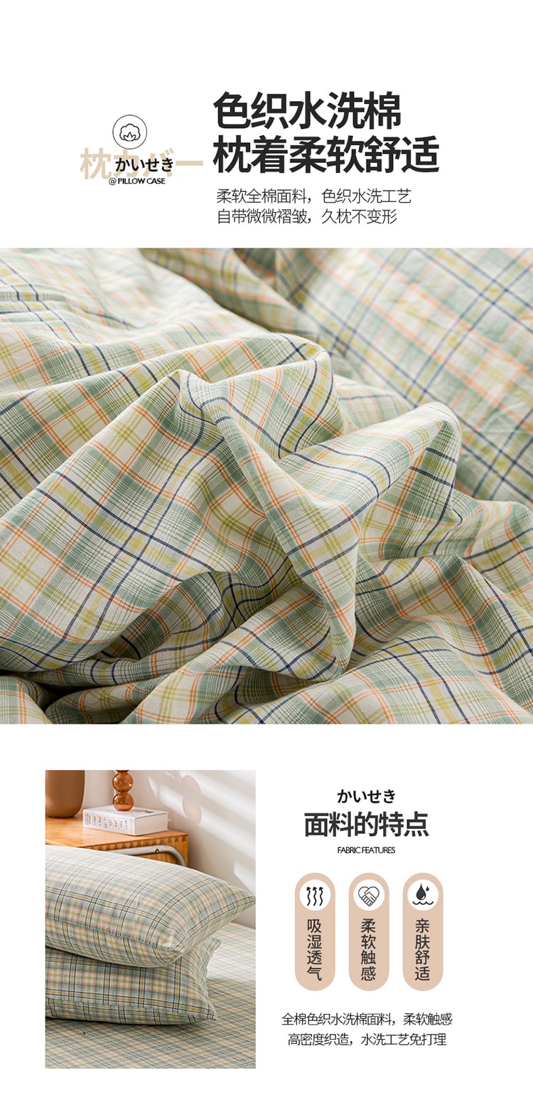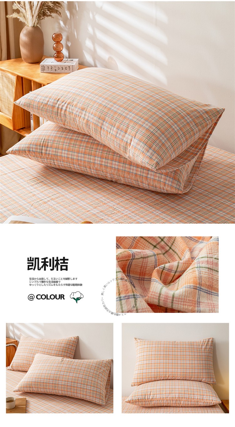 商品名称:九沐良品 新款A类色织水洗棉四件套-单品枕套 凯利桔