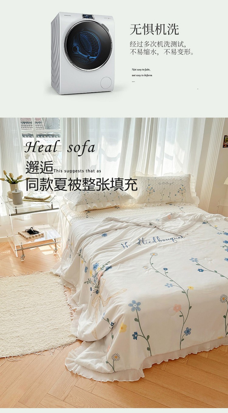 慕澄家纺 2024新款时尚印花泡泡棉花边夏被夏凉被空调被 夏被-心语,夏被-心语