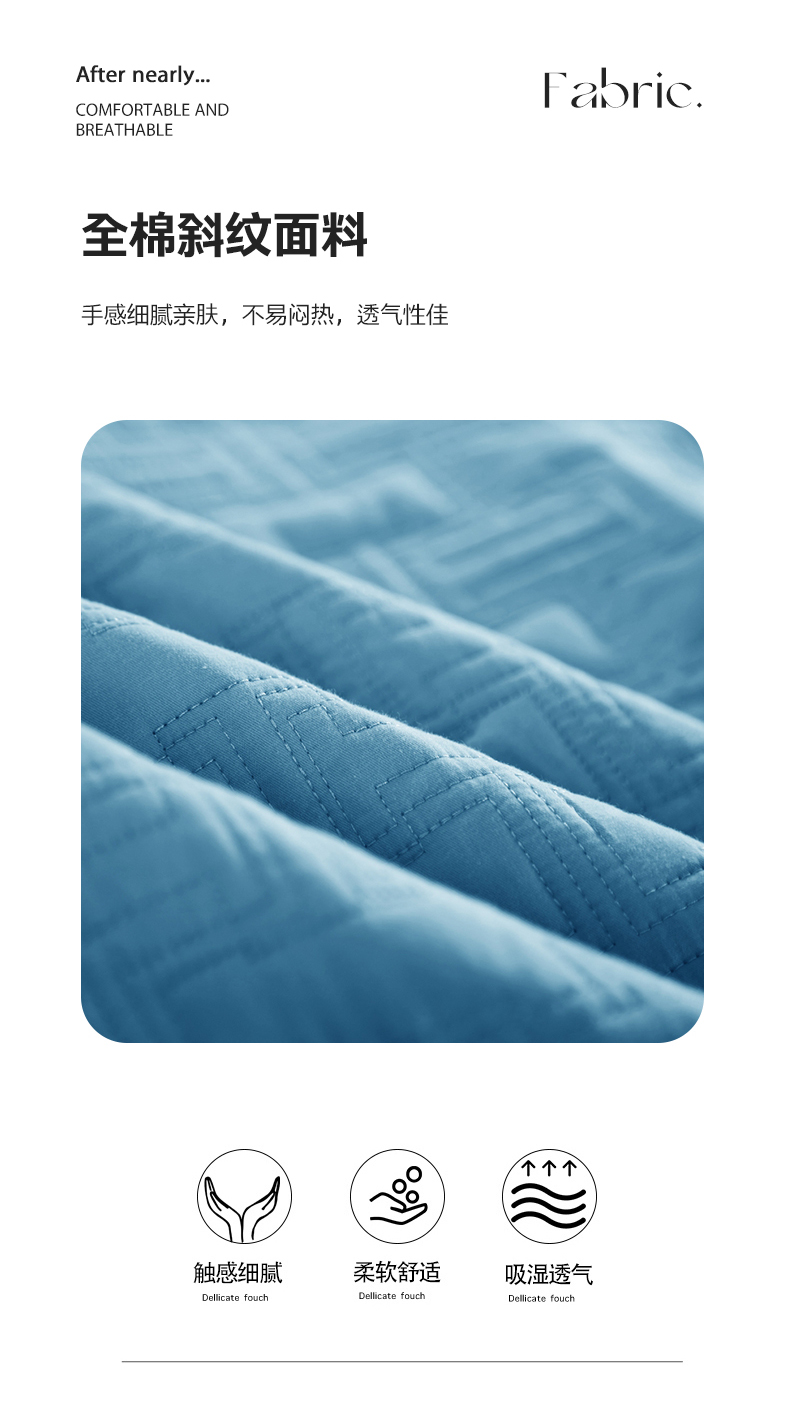 优乐家纺 2023新款双面全棉斜纹绗绣床盖唐顿系列三件套 唐顿-冰川蓝