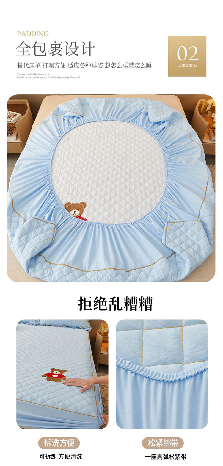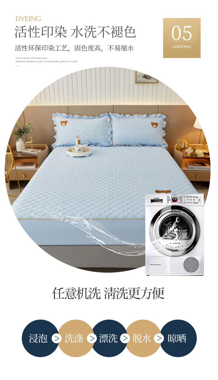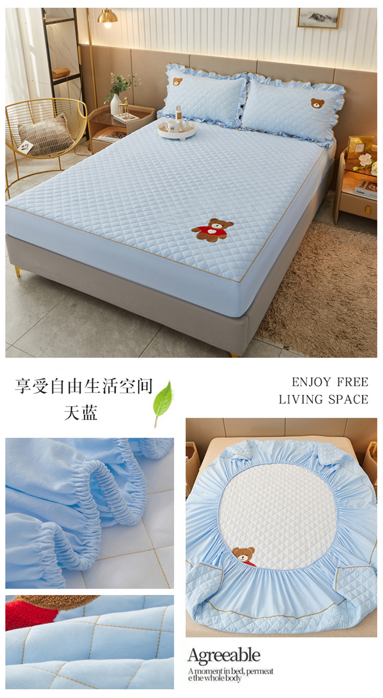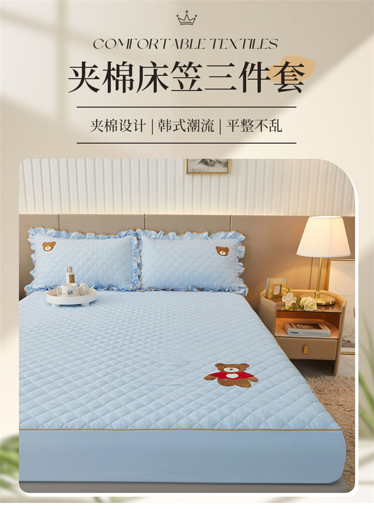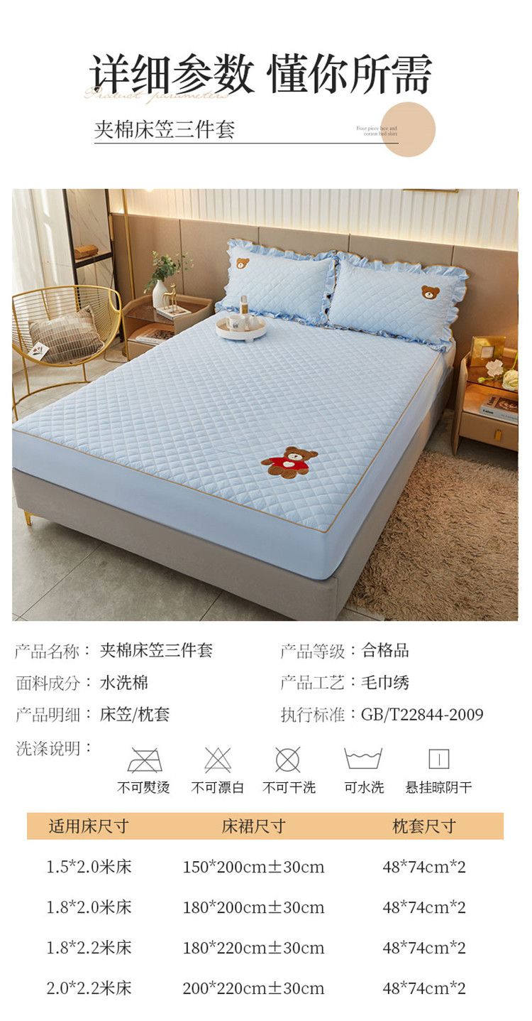 当前位置: 91家纺网 > 商品网购 > 床品套件 > 三件套 > 屹成家纺 2024年水洗棉毛巾绣款床笠三件套 天蓝