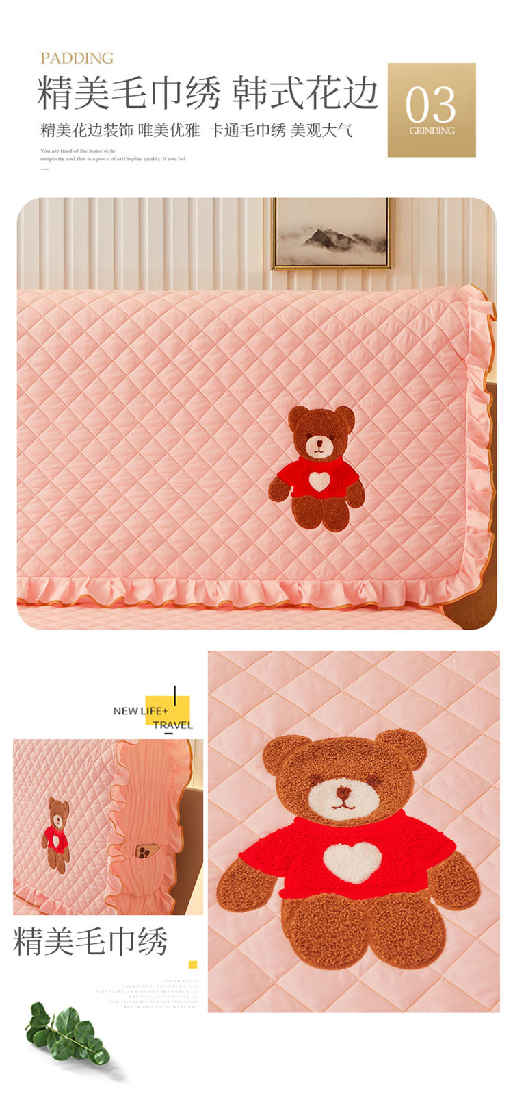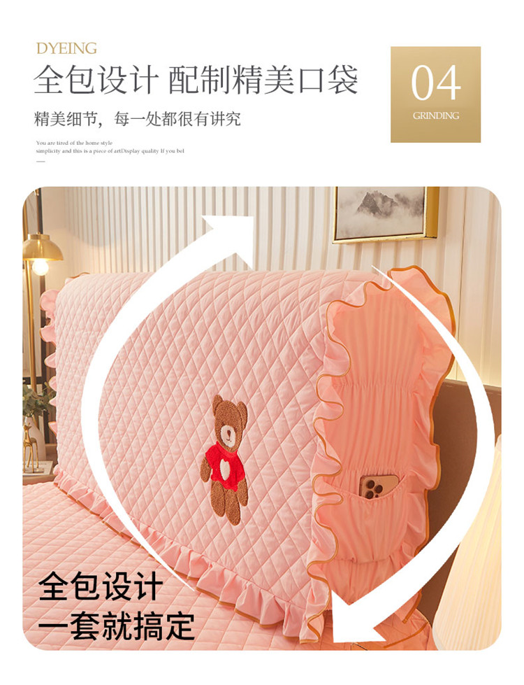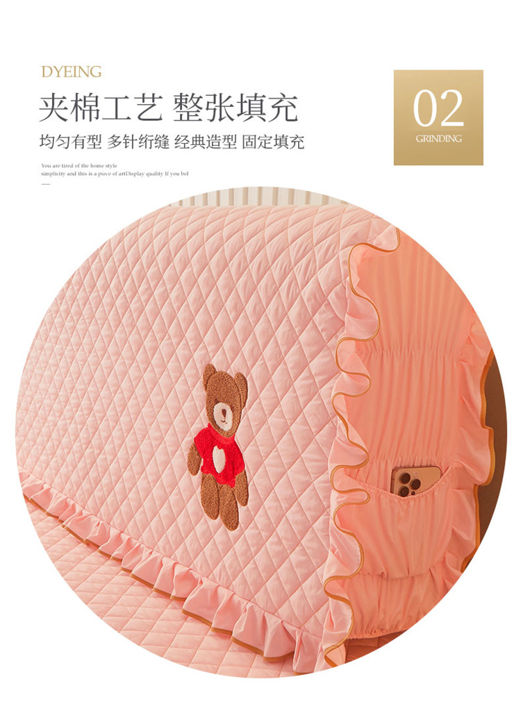 (总)屹成家纺2025新款水晶绒夹棉绗缝蕾丝床裙三件套(塞纳河畔)床裙单件起售价不低于105元,大红,豆沙,翡翠绿,粉玉,橄榄绿,蔚蓝,银灰