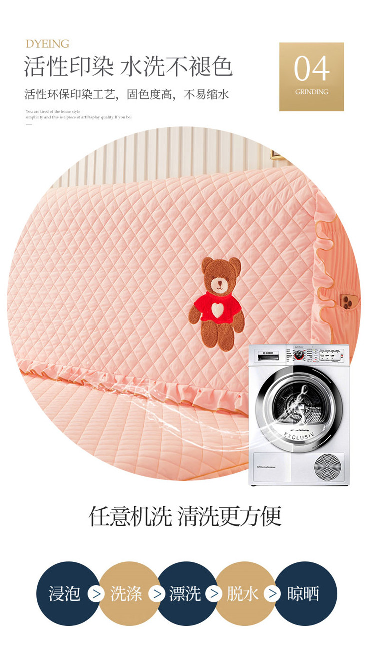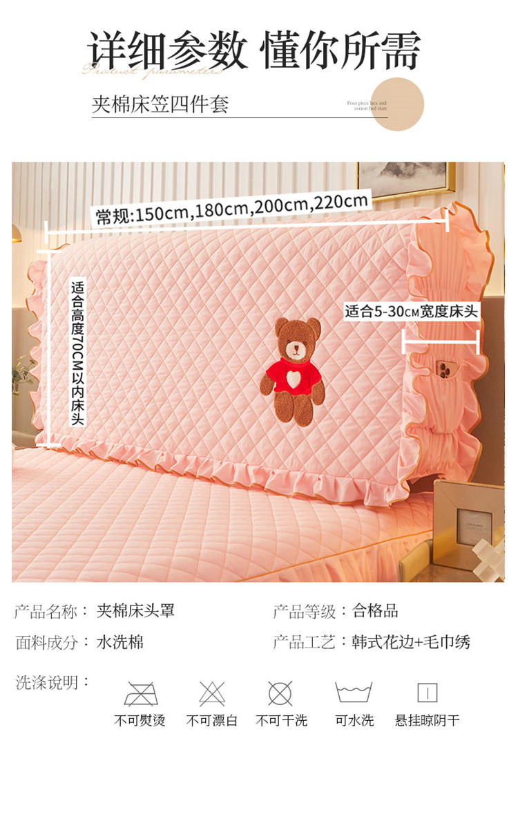 (总)屹成 2024新款水洗棉蕾丝四季款床笠床裙单品套件-床裙三件套,粉玉,豆沙,粉红,大红,橄榄绿,卡其,玫红,浅紫,水绿,天蓝,银灰