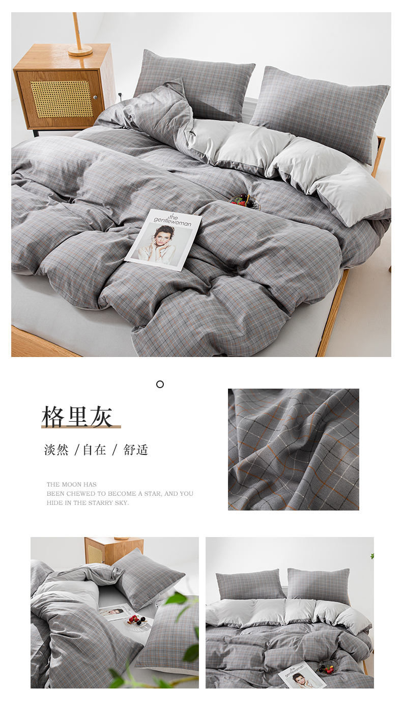 当前位置: 91家纺网 > 商品网购 > 床品套件 > 四件套 > 水洗棉四件套 > 宏源家纺 2023年4月新款水洗棉麻简约格子四件套 格里灰