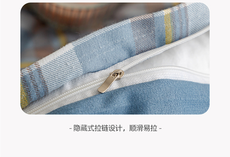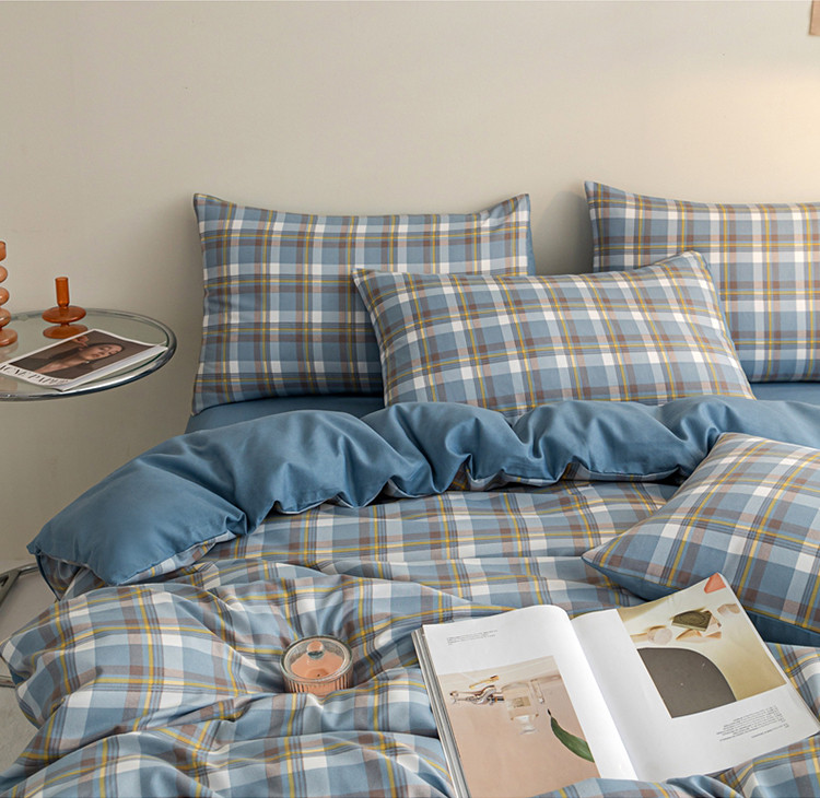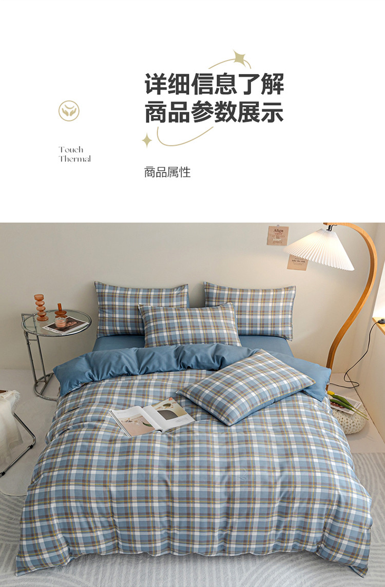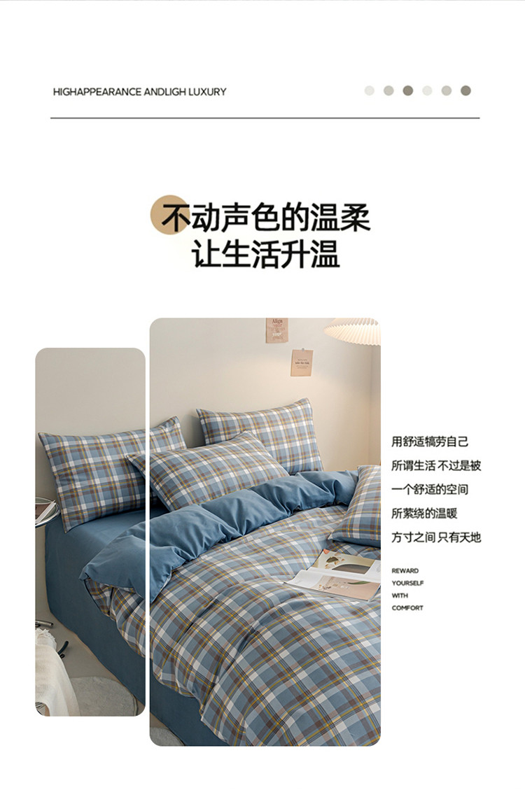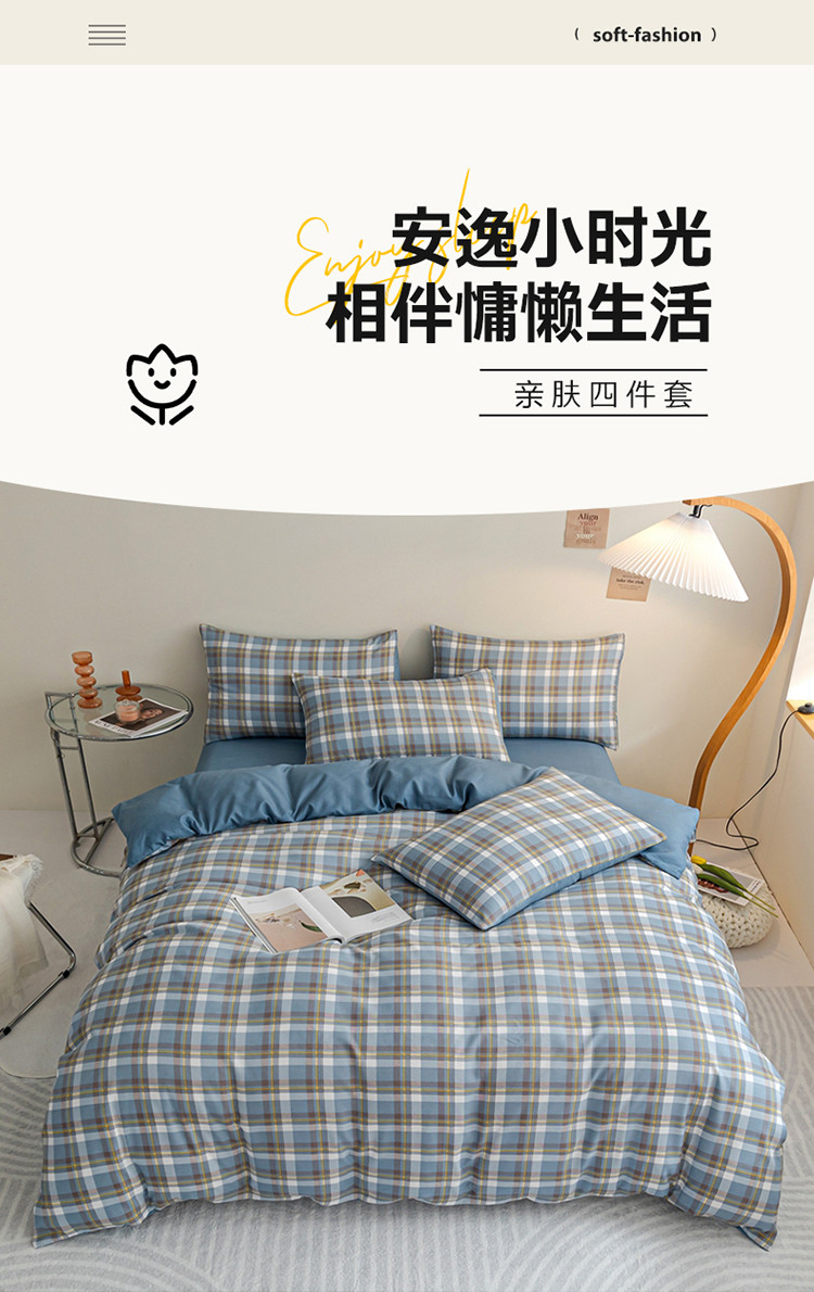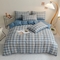 商品名称:米瑞娜 2024新款无印风四件套格子条纹水洗棉四件套 简兮-蓝