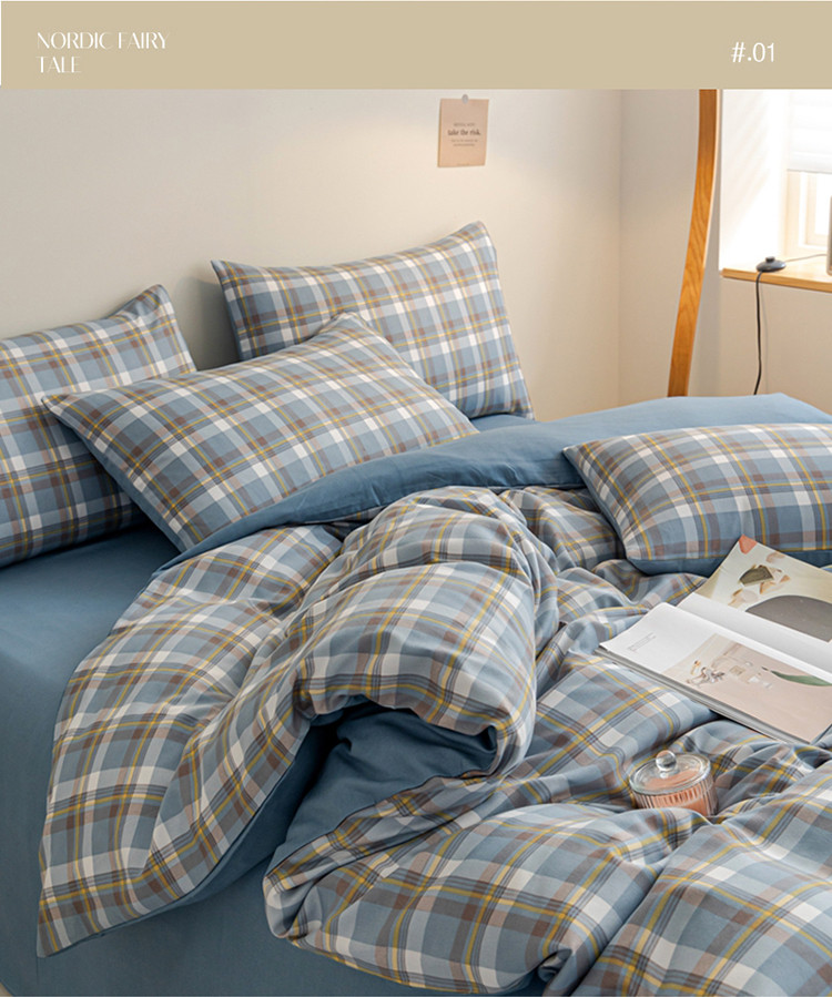 (总)米瑞娜 2024新款无印风四件套格子条纹水洗棉四件套,粉大格,粉条纹,黑白中格,简兮-桔,简兮-蓝,简兮-绿,蓝白中格,蓝大格,蓝条纹,蓝小格,洛卡-咖,绿白中格,绿大格,暖阳-蓝,星空-桔,星空绿,贝拉-粉