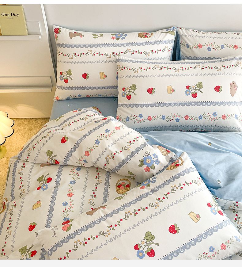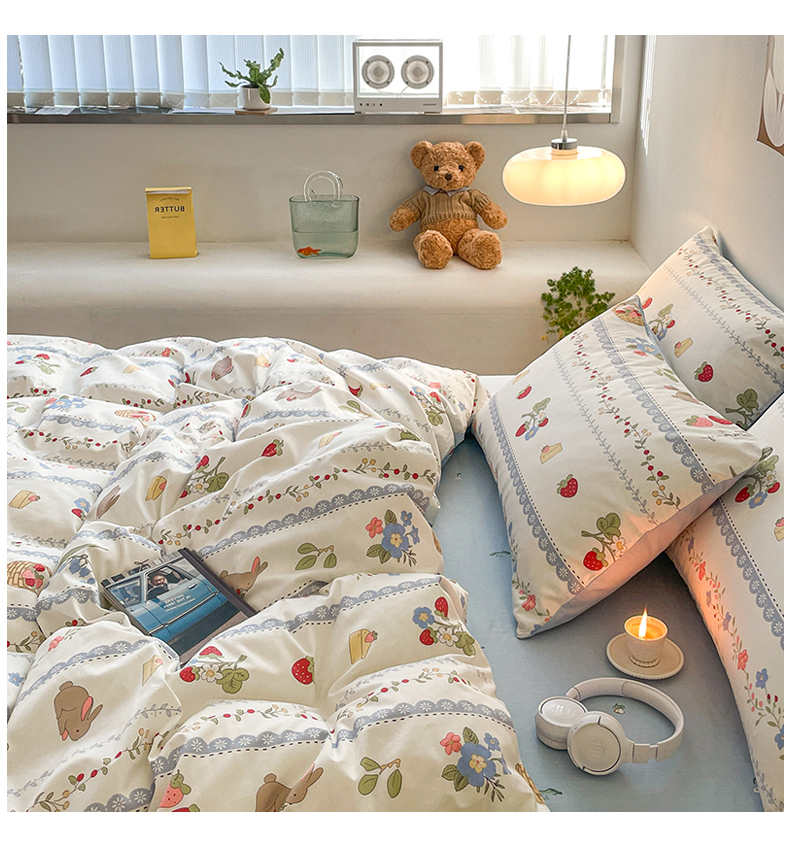 当前位置: 91家纺网 > 商品网购 > 床品套件 > 四件套 > 全棉普通四件套 > 麦伦2023新款40s13372ins小清新全棉四件套第三波 浆果小兔
