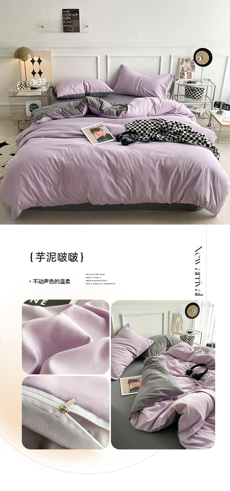 当前位置: 91家纺网 > 商品网购 > 床品套件 > 四件套 > 普通磨毛四件套 > 贝拉梦2023新款105g超级柔软磨毛亲肤棉双拼简约风四件套 芋泥啵啵