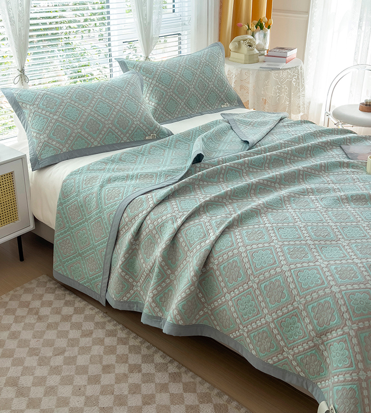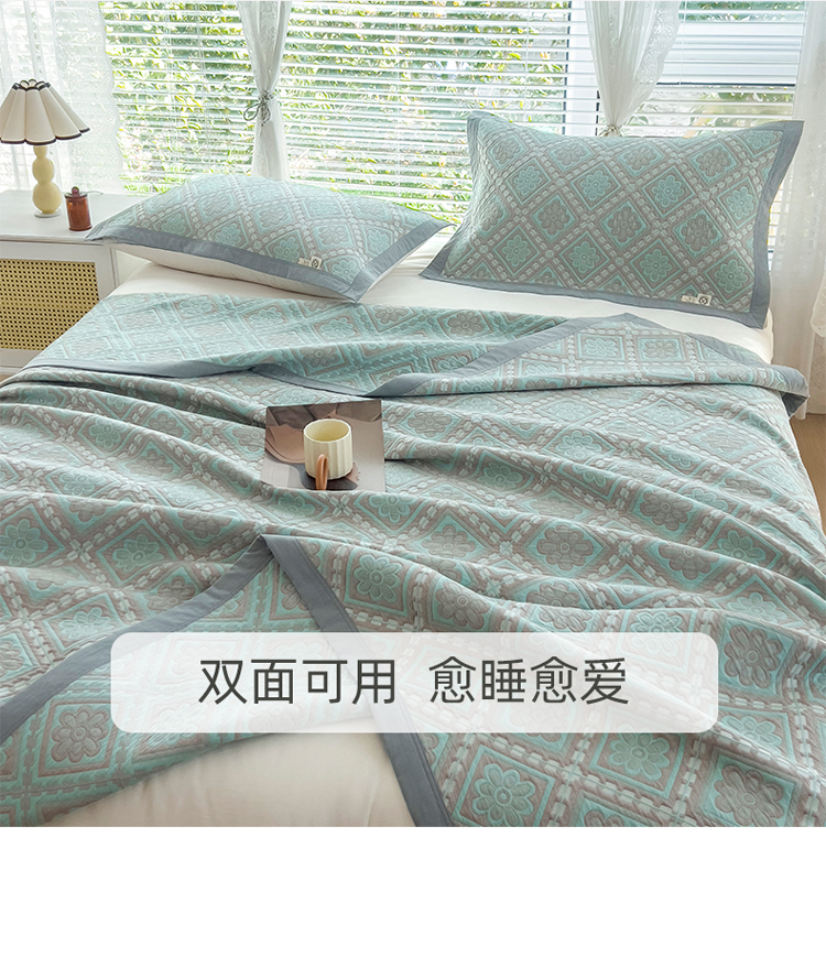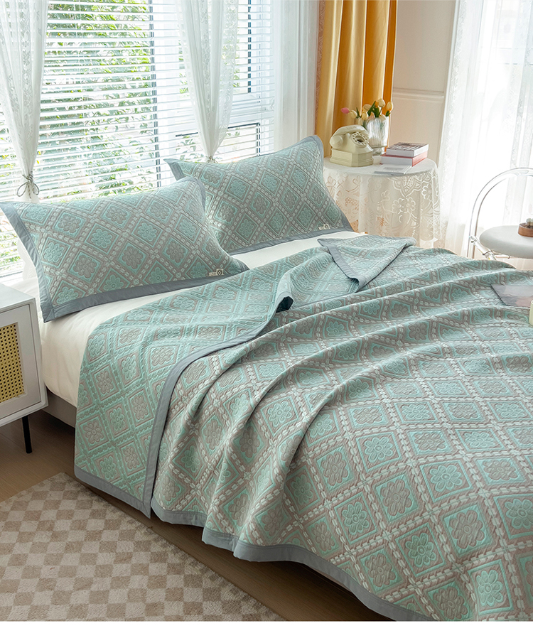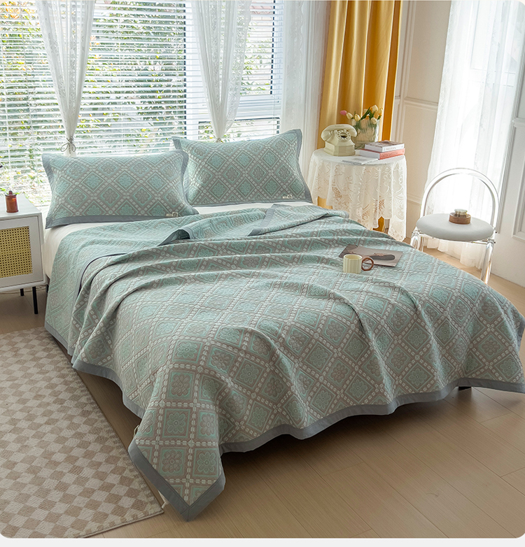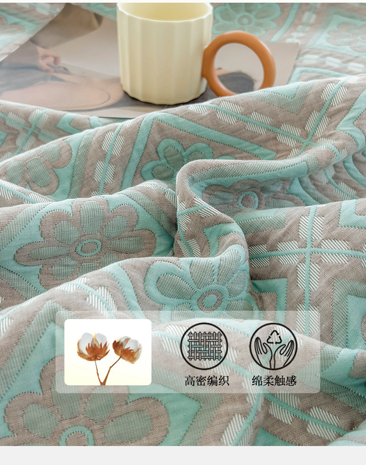 商品名称:2023全棉三层细纱色织提花毛巾被盖毯大床盖夏被空调被毛巾毯轻薄款 梦回风铃 湖灰