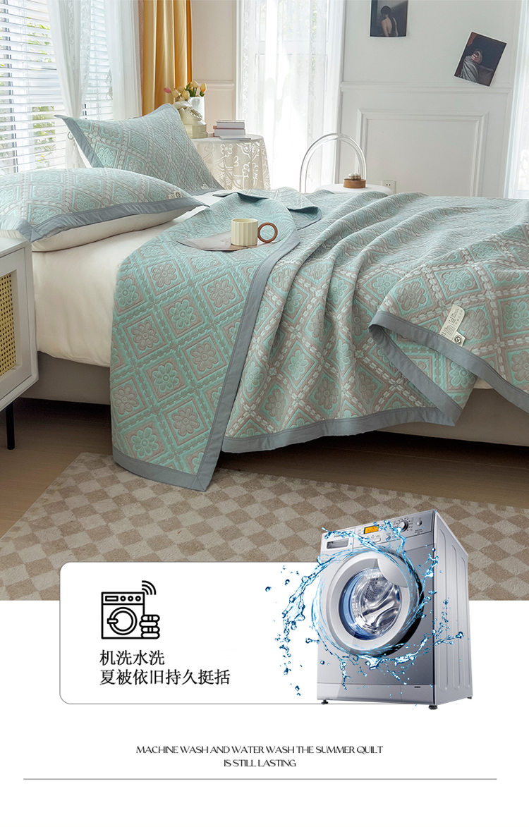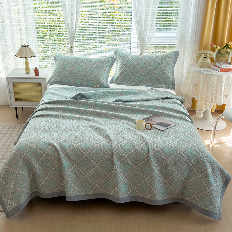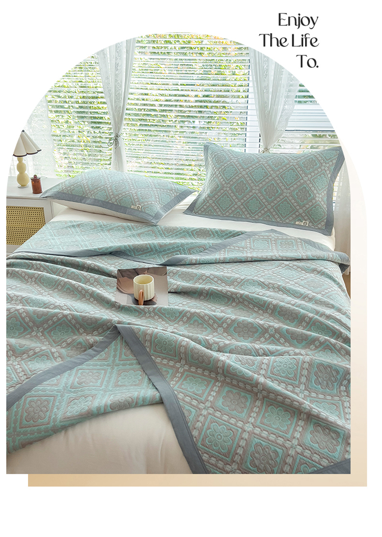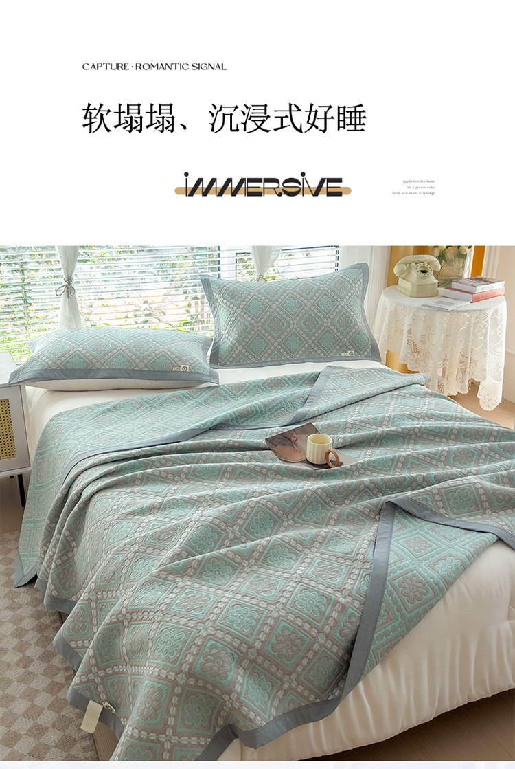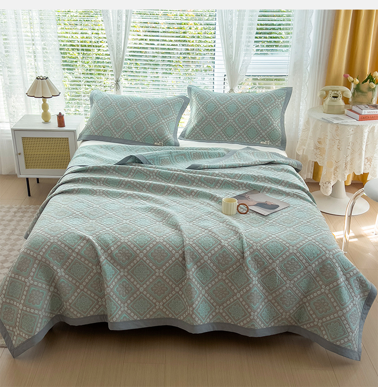 商品名称:2023全棉三层细纱色织提花毛巾被盖毯大床盖夏被空调被毛巾毯轻薄款 梦回风铃 湖灰