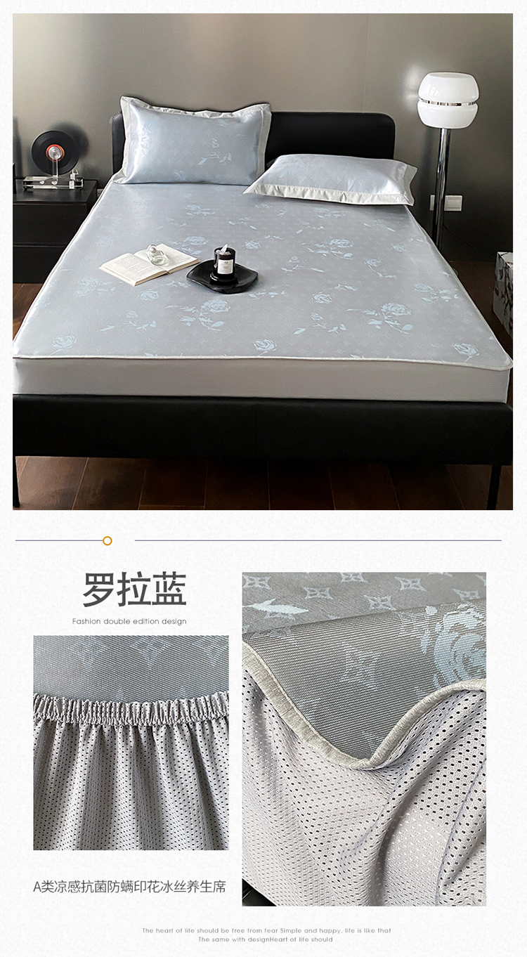 (总)三味舒屋 凉感抗菌防螨印花冰丝养生席_刺绣系列,奢路蓝 床席,奢路蓝 床笠,奢路米 床席,奢路米 床笠
