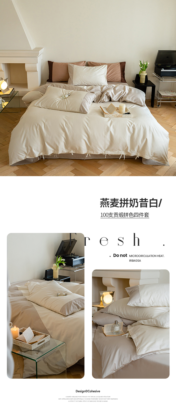 当前位置: 91家纺网 > 商品网购 > 床品套件 > 四件套 > 全棉普通四件套 > (总)华超针织 2023新款100支贡缎拼色四件套