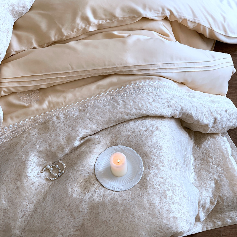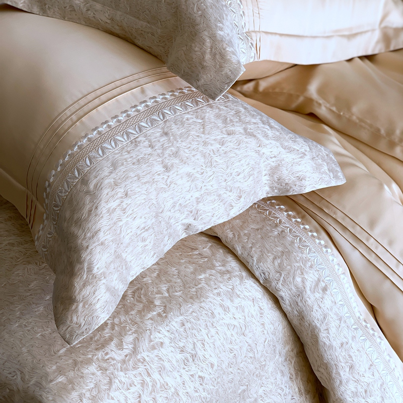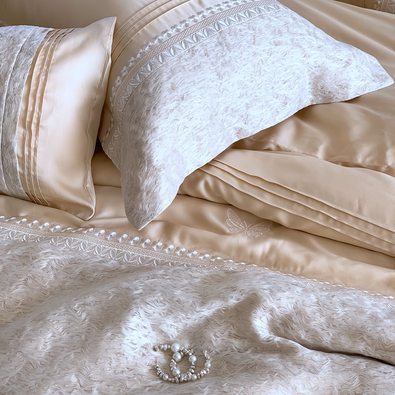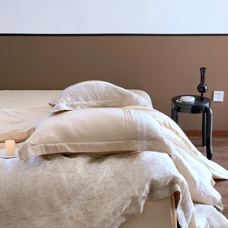 (总)涞澳家纺 2026新款全棉纯棉水洗棉纯色花边款四件套-珠若,珠若-米白,珠若-浅灰,珠若-浅绿,珠若-浅玉