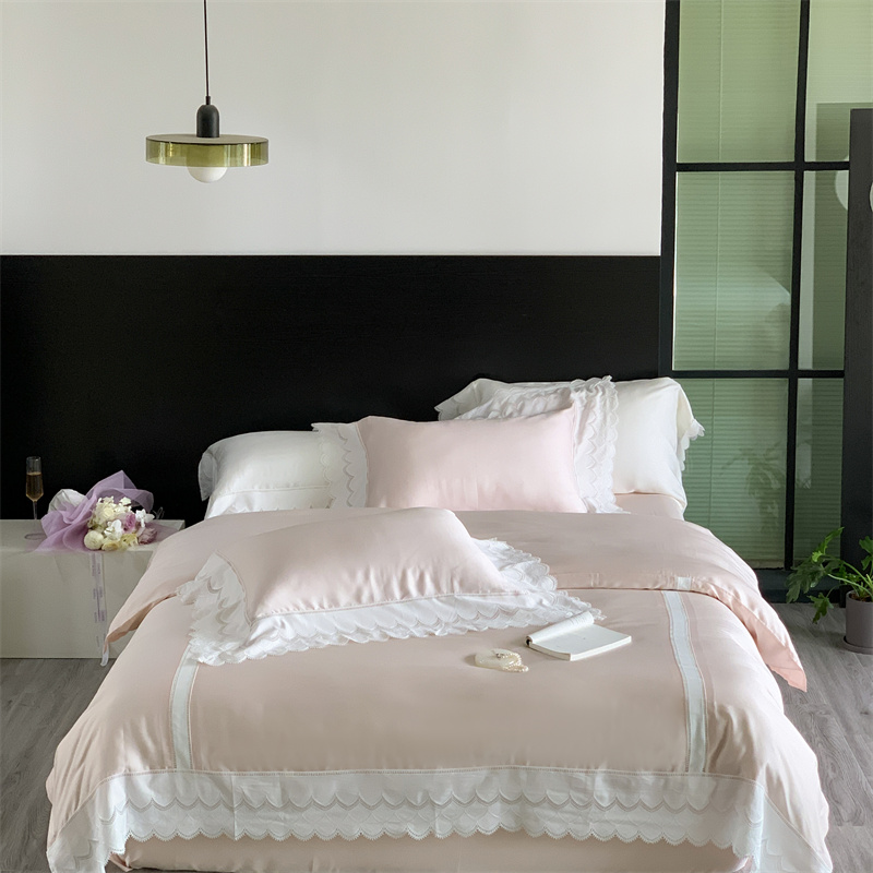 馨蕊家居 2023新款80支兰精天丝四件套-天丝卡曼丝 风格二 卡曼丝-初夏粉